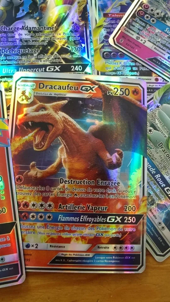 Mon fils est très satisfait de la qualité des cartes. Mais comme il avait fait une commande similaire il y a peu de temps (pas le même paquet mais aussi des GX) il se retrouve maintenant avec plein de doublons alors qu'il espérait des cartes différentes.