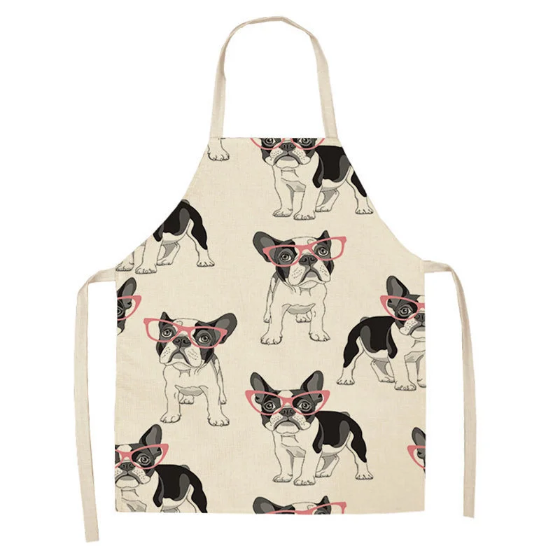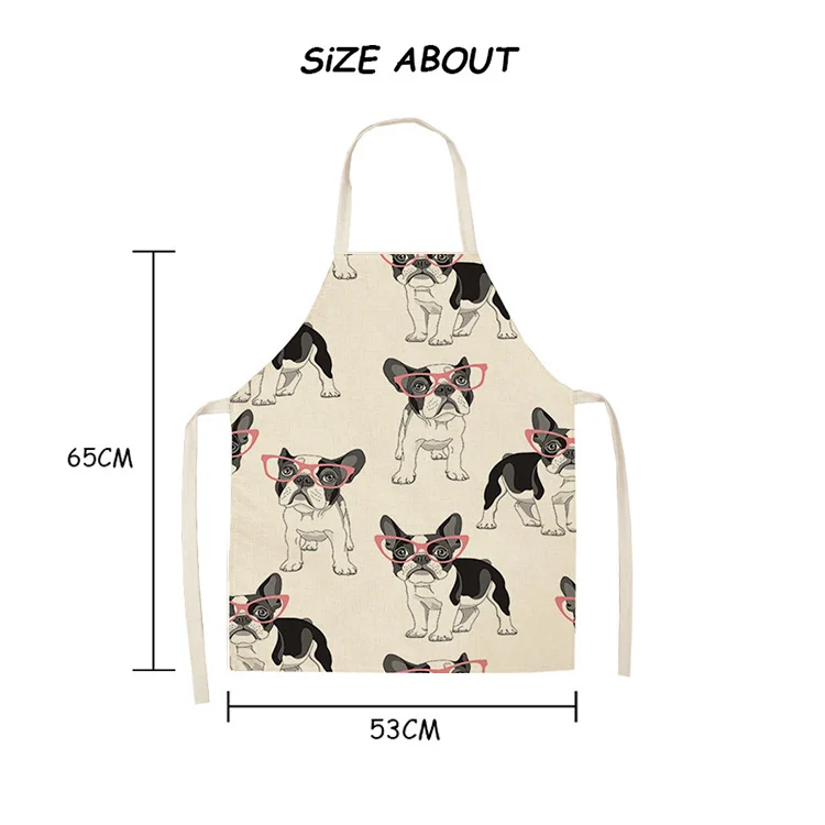 Нагрудник для женщин, из хлопка и льна, 53 х65 см, с изображением бульдога, таксы, мопса, для домашнего использования, для выпечки, WQ0037