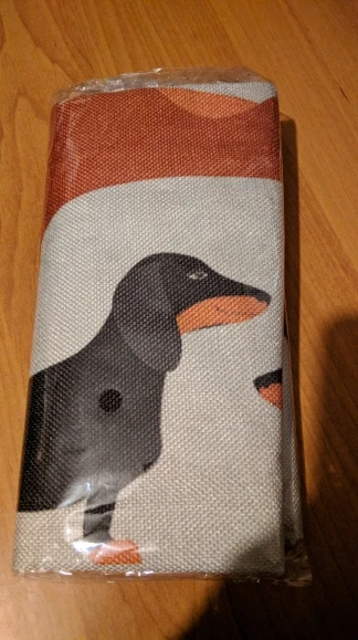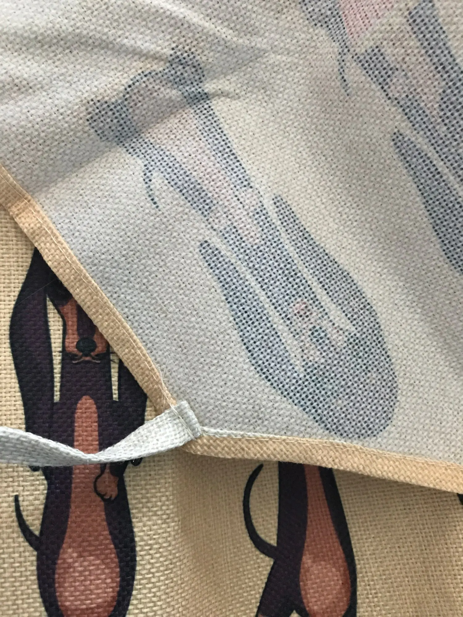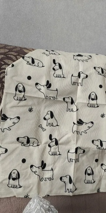Fast delivery, cute print. The fabric is strange - it is some kind of burlap. For this price it is ok. I recommend the seller.