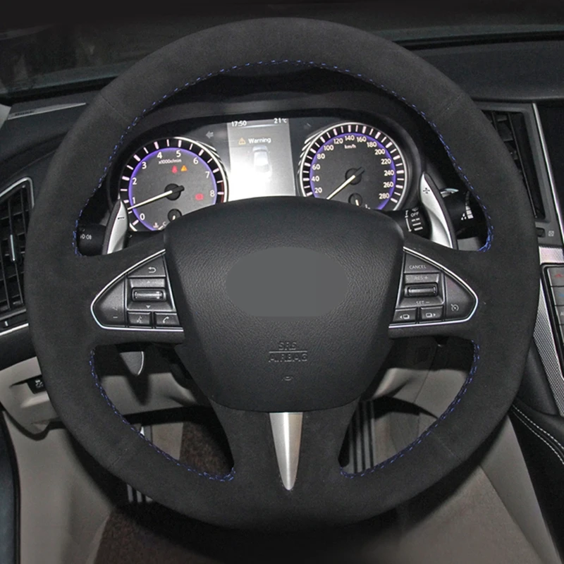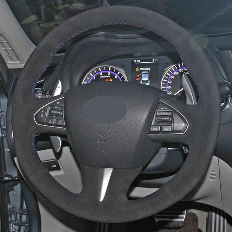 Черные замшевые ручные стежки чехол рулевого колеса автомобиля для ...