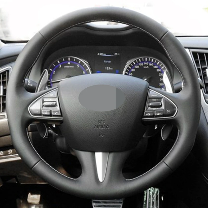 DIY черный чехол рулевого колеса автомобиля из натуральной кожи для...