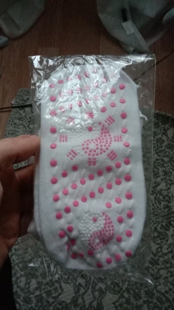 внешне всё отлично, соответствует описанию полностью.Ткань плотная, но не толстая, тонкой тоже не назовешь, немного тянется. Размер ноги у меня 37, носки в пору. Ещё не использовала по назначению. Если будут неудобно в носке или вызывать дискомфорт, напишу дополнительно. Доставка месяц в сборной посылке. К покупке товара рекомендую. Благодарю продавца за оперативную работу.