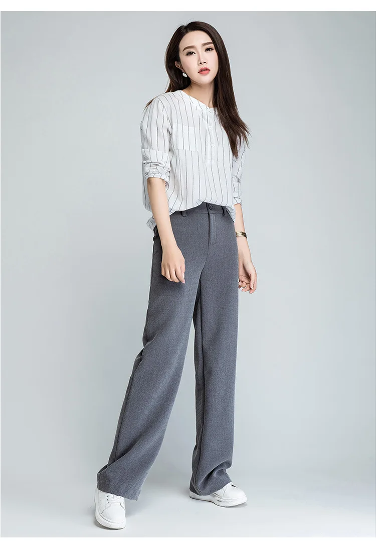Женские брюки с широкими штанинами, черные, серые, свободные, прямые, в простом стиле, на весну и лето