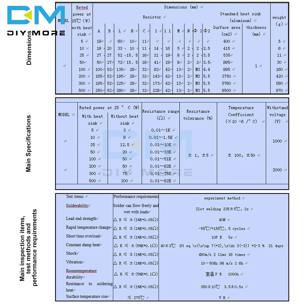 Item: 100W 8 Ohm 5% aluminium shell housed resistors 4x 5PCS pack Purchased on the 9th, received on the 24th of June via Aliexpress Standard Shipping. The seller ships very fast and communicates very well. As for the resistors: After measuring all the 20 pieces they have very consistent resistance (very little variation) by far below their 5% tolerance range. The electrical connections seem to be very robust and the area of heat transfer is perfectly planar. Combining all these together exhibits a good build quality. The seller and the product obtains highest rating.