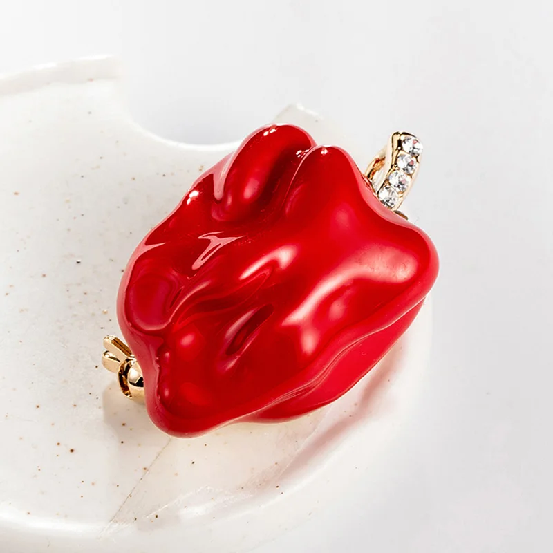 Брошь женская эмалированная в форме фрукта, Красного граната