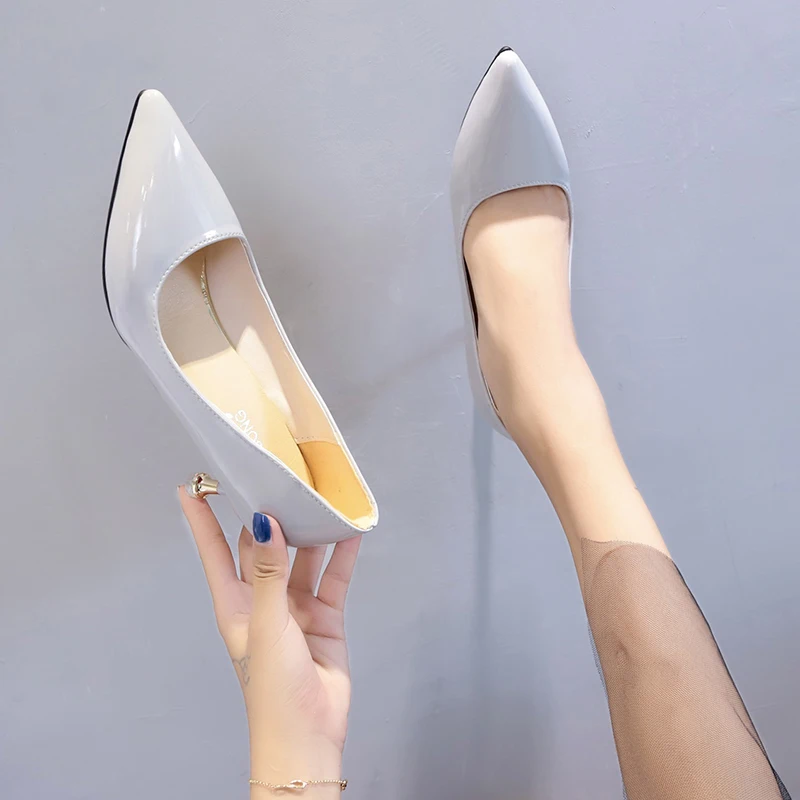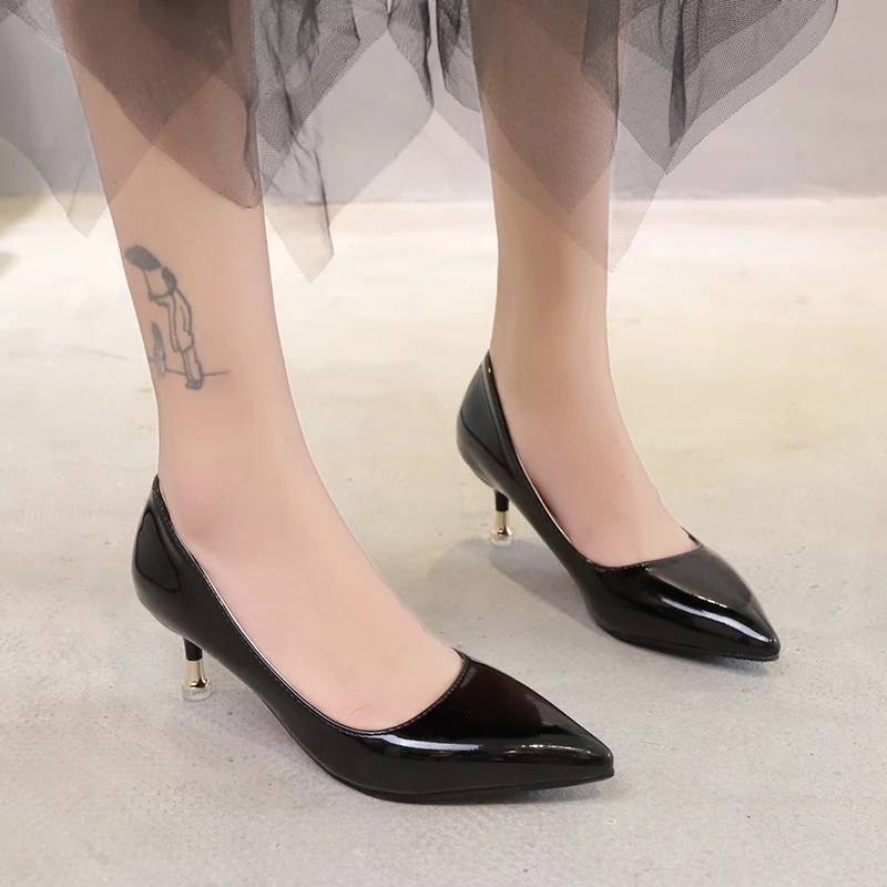 Туфли-лодочки женские из лакированной кожи, с острым носком, черные, белые
