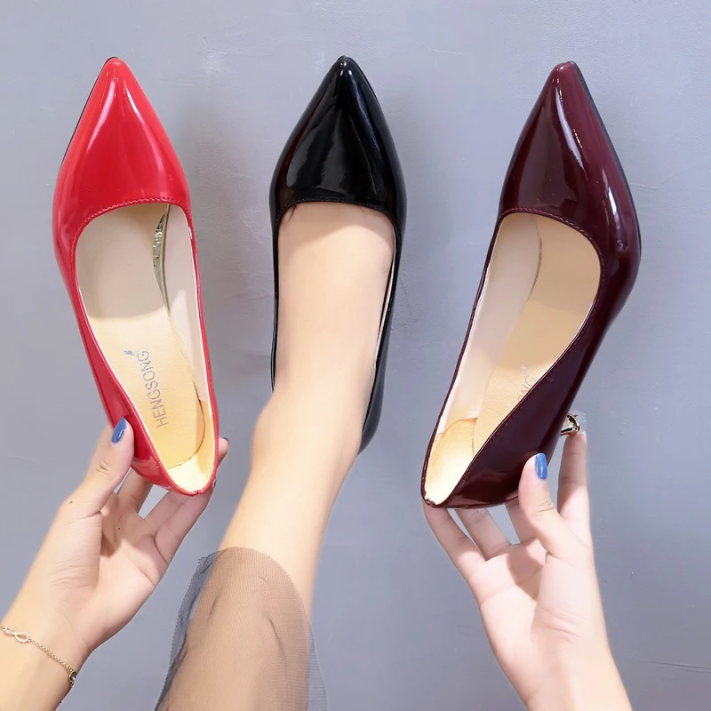 Женские туфли-лодочки из лакированной кожи, на высоком каблуке