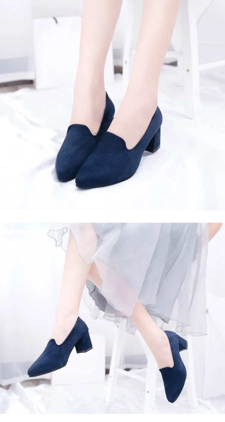 Туфли женские офисные на низком каблуке, искусственная замша, офисн...