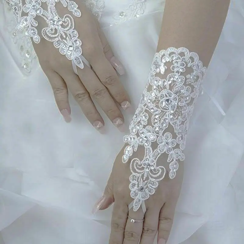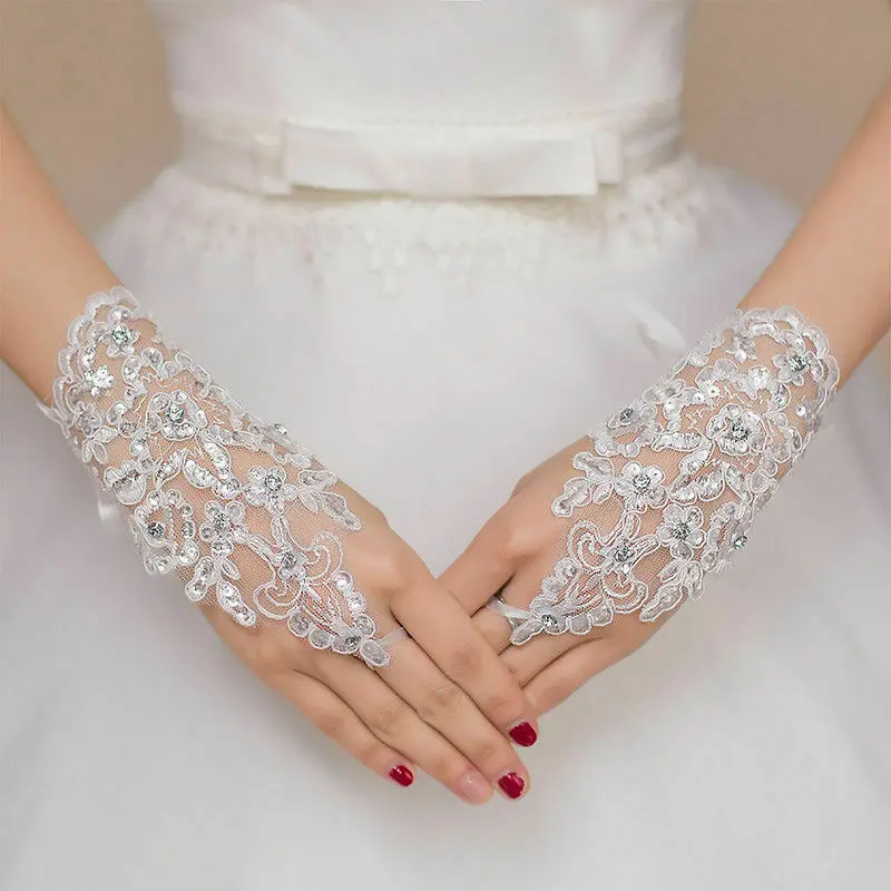 Свадебные перчатки, короткие кружевные, без пальцев, Белый слоновой кости красный, свадебное вечернее платье