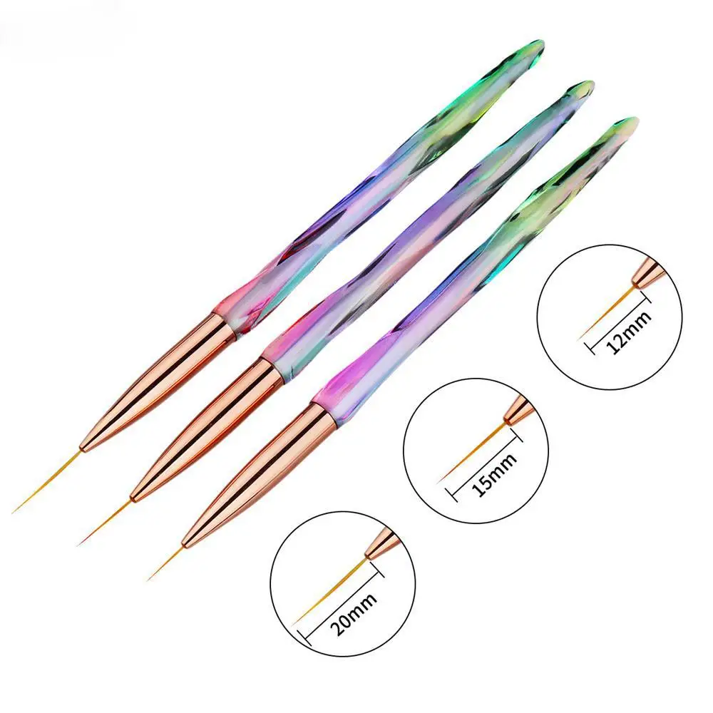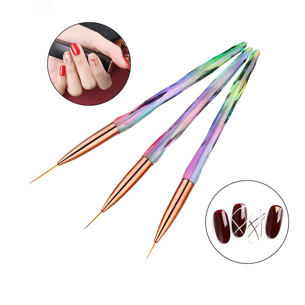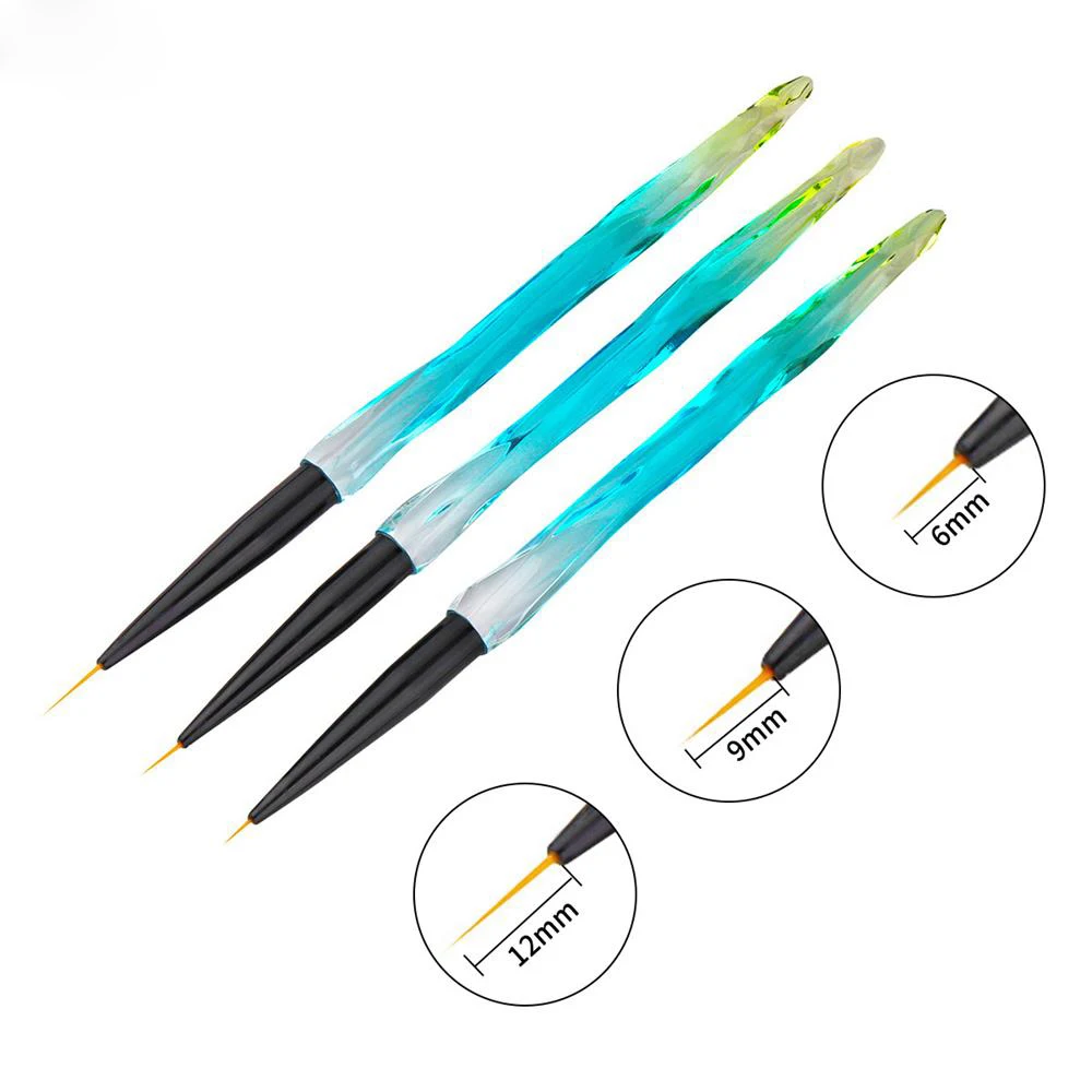3 шт, французский стиль, 3D градиентная ручка для дизайна ногтей, УФ-Гелевая Кисть, кристальная ручка, инструмент для маникюра, рисования линий, сетки, полосы, инструмент для дизайна ногтей