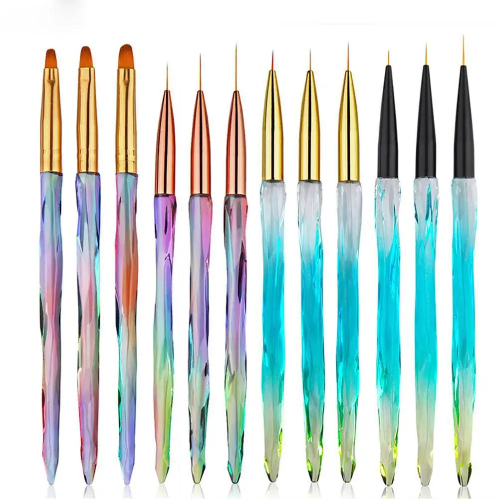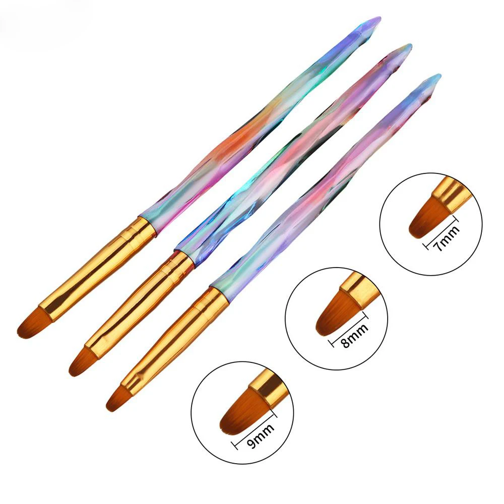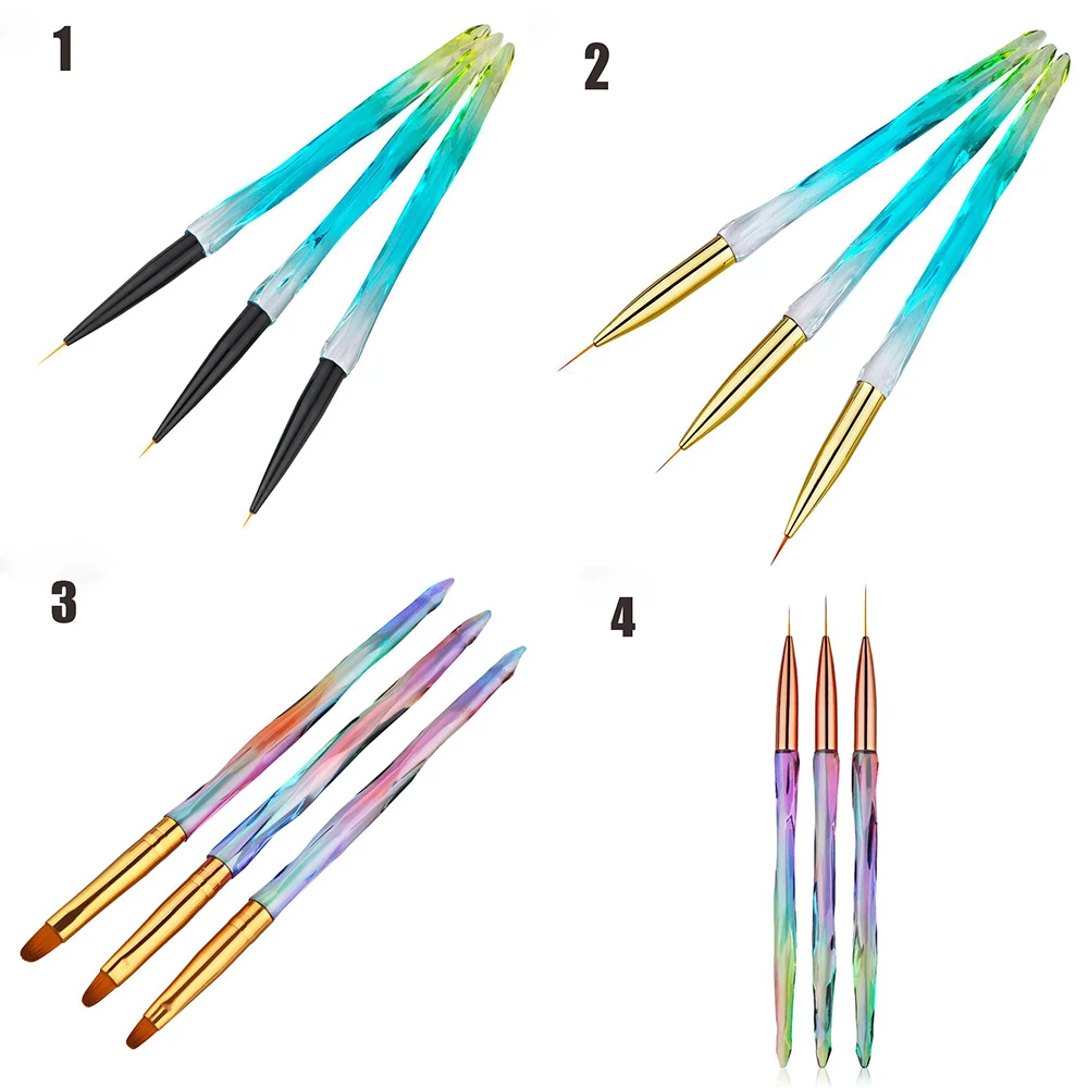 3 шт акриловая УФ-Гелевая Удлиняющая ручка для рисования ногтей французские линии полоса цветок картина шаблон Кисть-инструмент для маникюра кисть