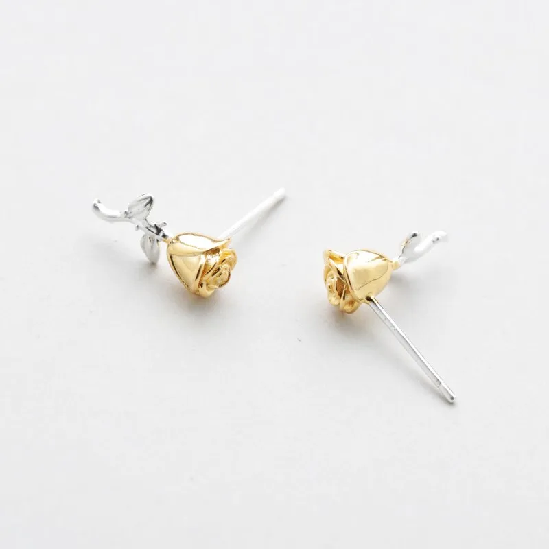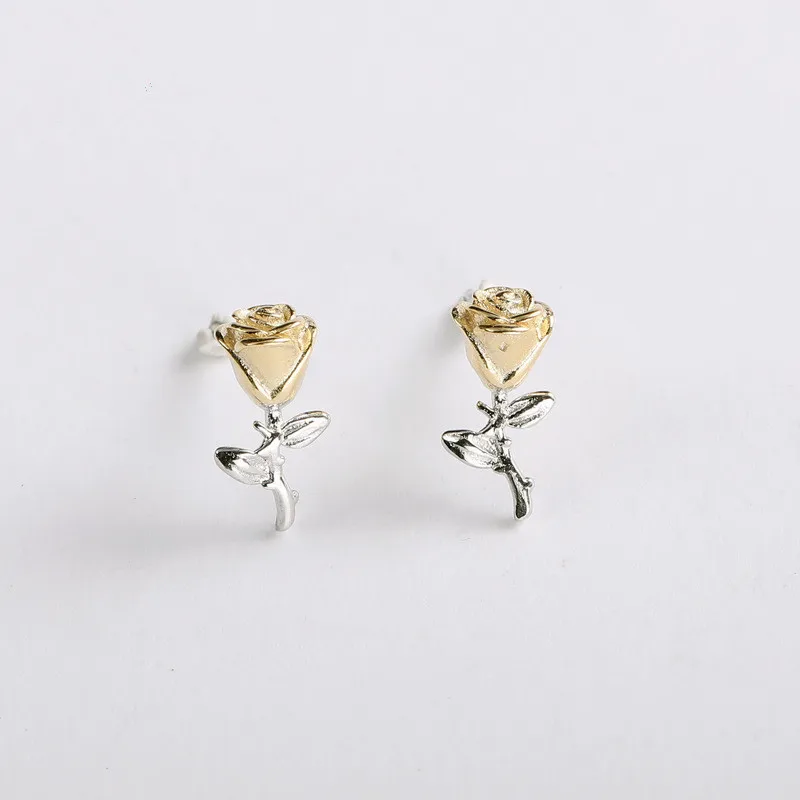 Красивые серьги-гвоздики из натуральной 925 пробы с серебряной розой, романтические милые серьги в виде цветка для женщин, элегантные ювелирные изделия, подарок 2019