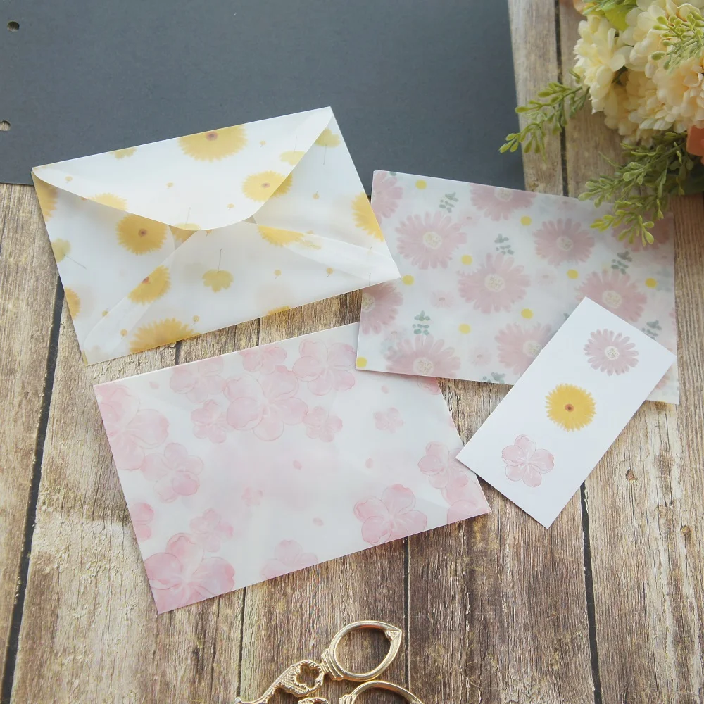 10,5*14,7 см 3 шт. светло-розовый желтый цветочный стиль конверт открытка сообщение карта конверт с приглашением прозрачная и печатная наклейка