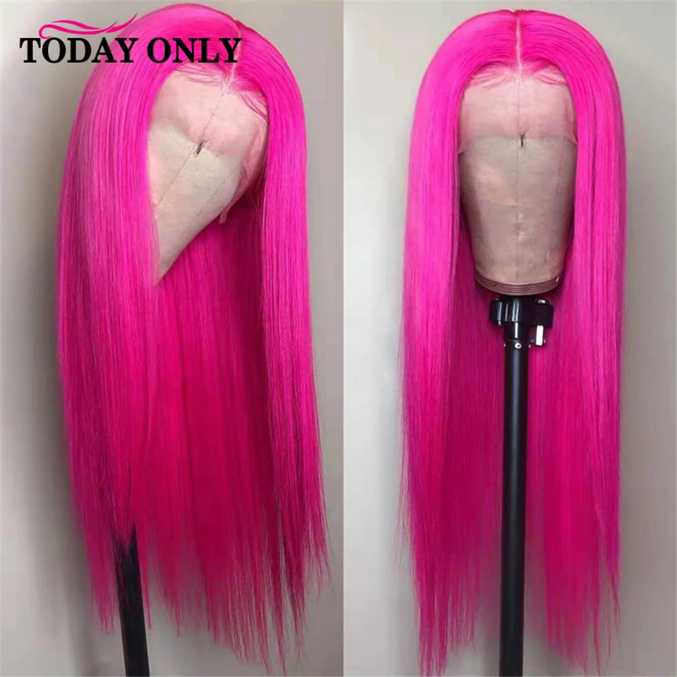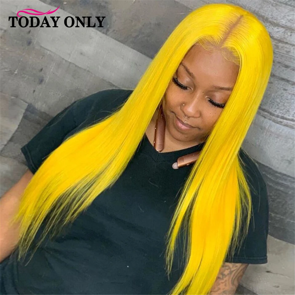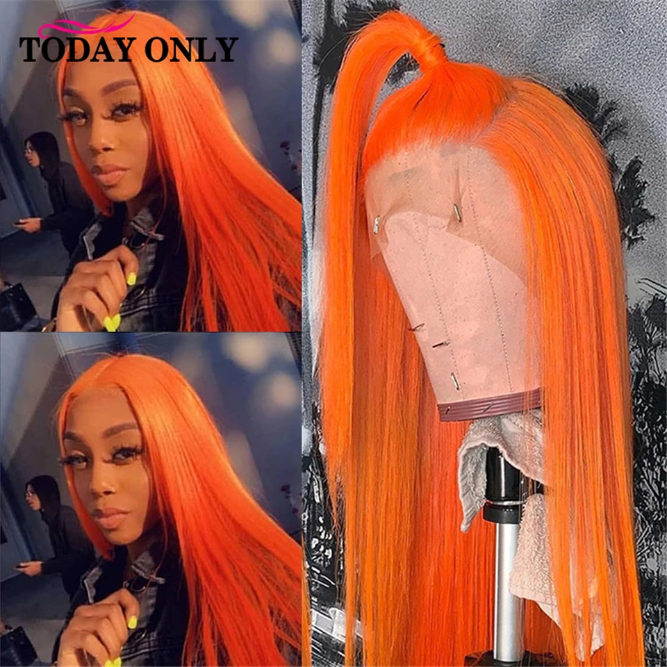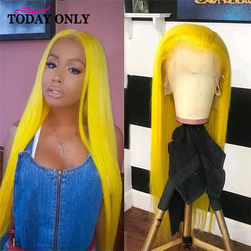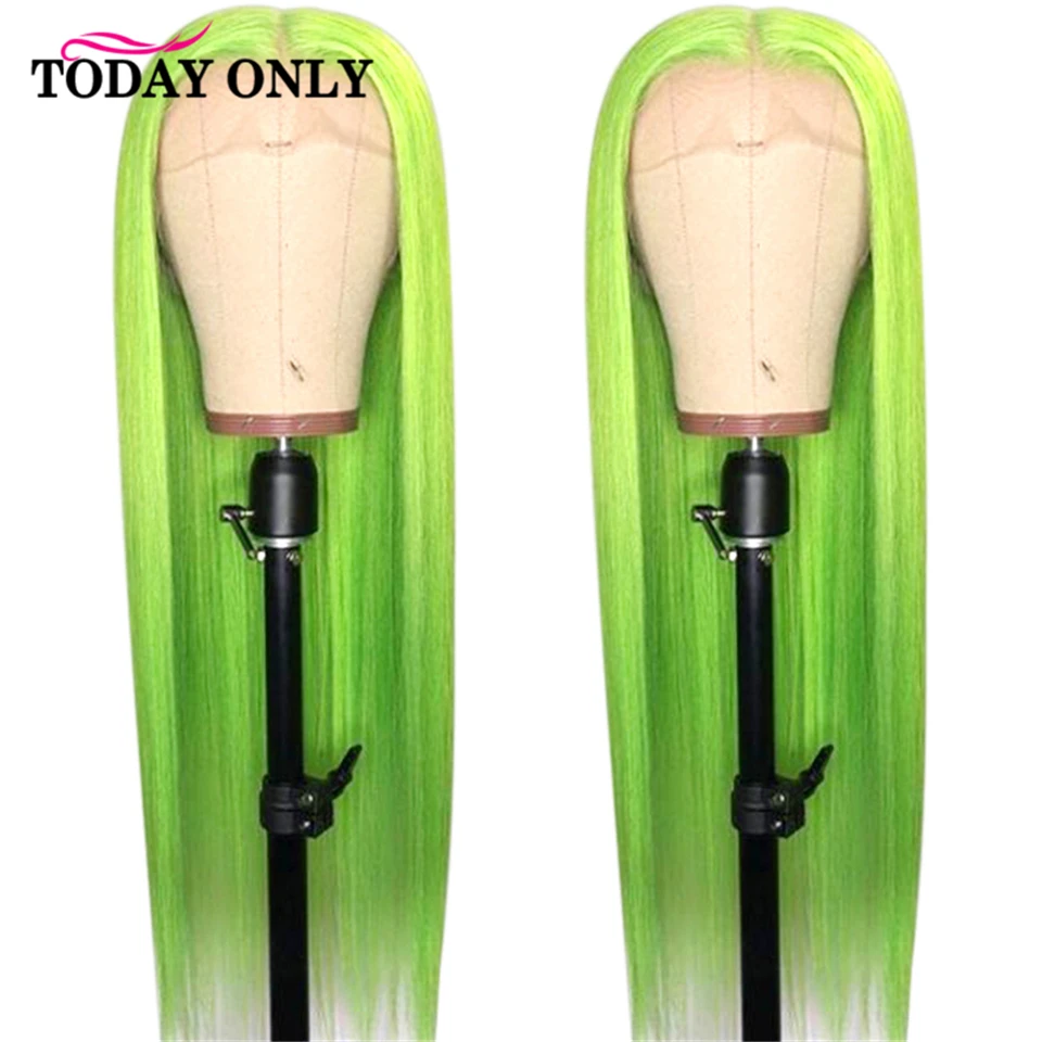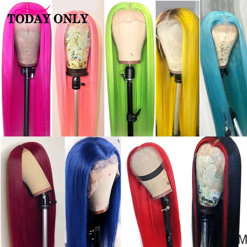 Зеленый парик из человеческих волос 13х4 оранжевый прямой желтый блонд кружевной передний парик розовый с красной подсветкой Bule фиолетовый Омбре парики для женщин Remy