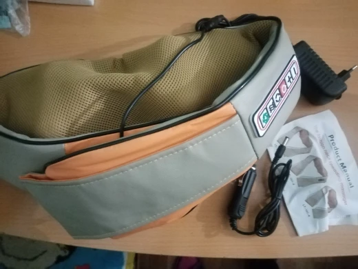 отсылку отправили на 3 день после заказа, долетела за два дня! массажер неплохой, инфракрасное тепло отсутствует, просто подсветка светодиодами, разминает хорошо. автомобильный адаптер есть в комплекте.