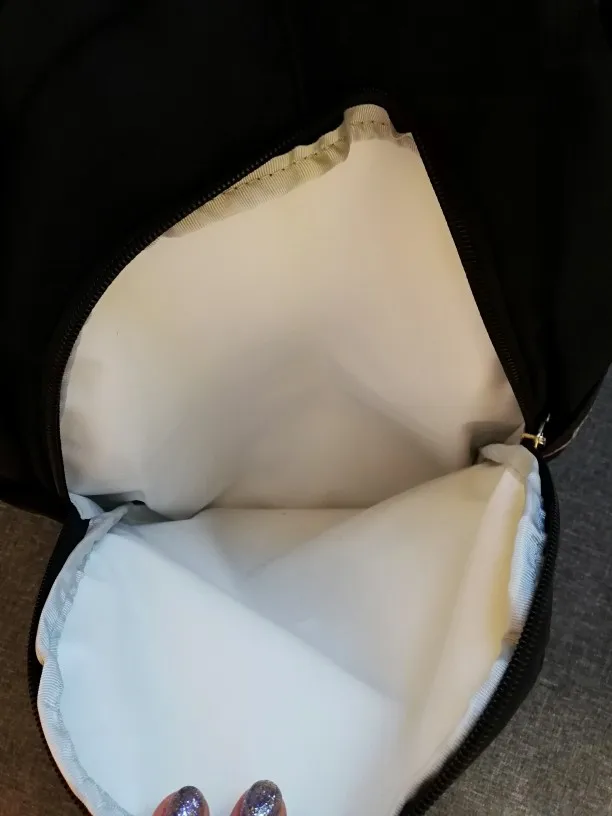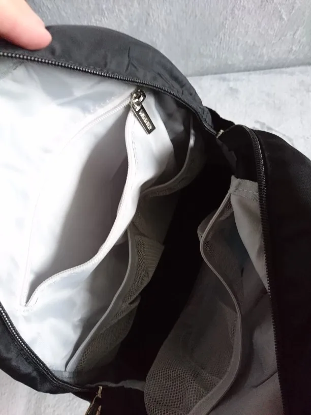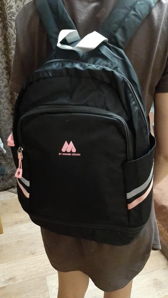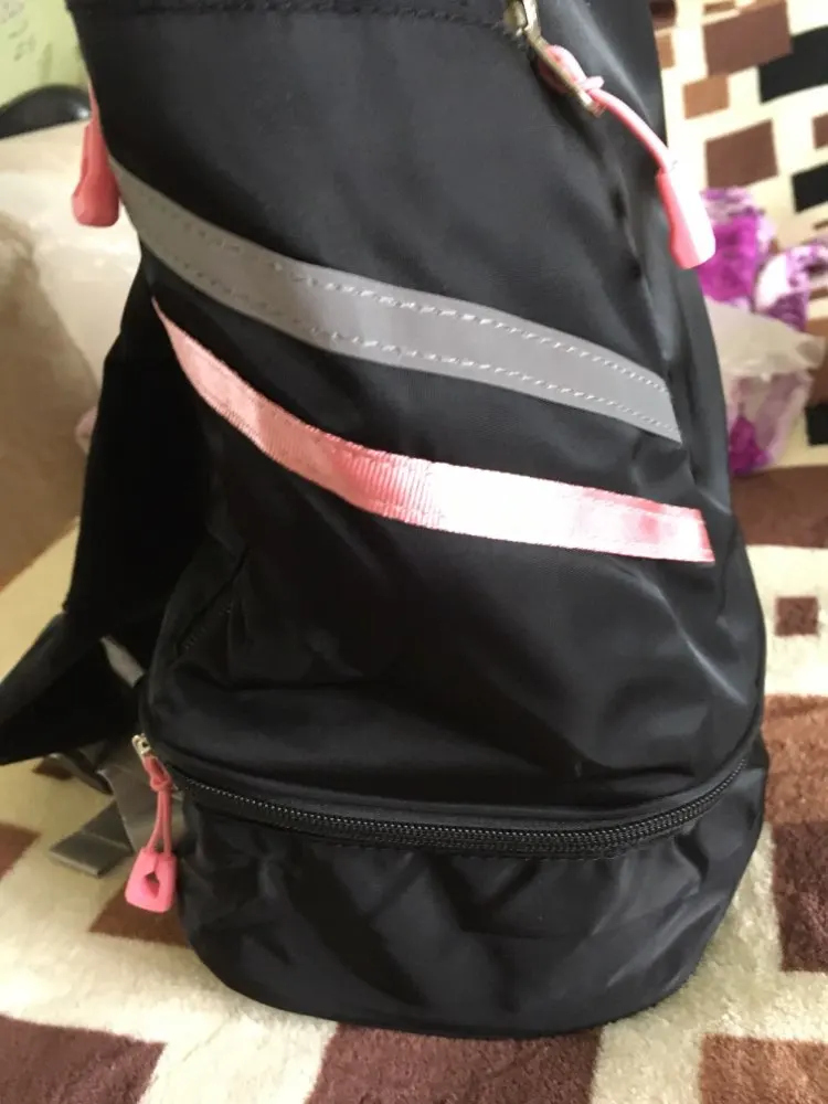 Посылка шла 2 месяца, отслеживалась. Рюкзаком довольна. Ткань плотная. Передний карман внутри непромокаемый. Один большой карман, по его стенкам спереди три маленьких кармашка (один на замке, два сеточкой) и один на задней внутренней стенке тоже сетка, но большой. Два внешних кармашка без застёжек. Фликеры. Очень понравился отсек для обуви - вместительный и с резинкой-фиксатором. Рекомендую.
