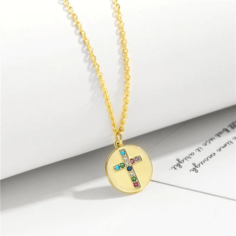 Ожерелье унисекс с кулоном в виде креста, с фианитами