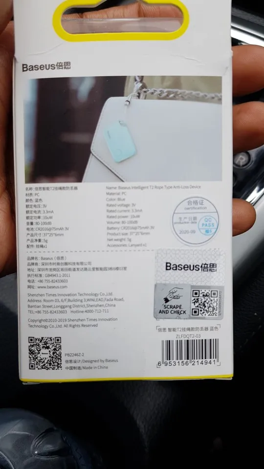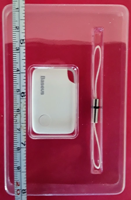 Хороший компактный брелок для защиты от потери вещей. При потере связи с телефоном включается звуковое оповещение на брелке и телефоне. Аккумулятор (CR2016) уже установлен, уровень его заряда виден из приложения для сопряжения (Baseus Smart).