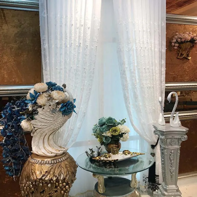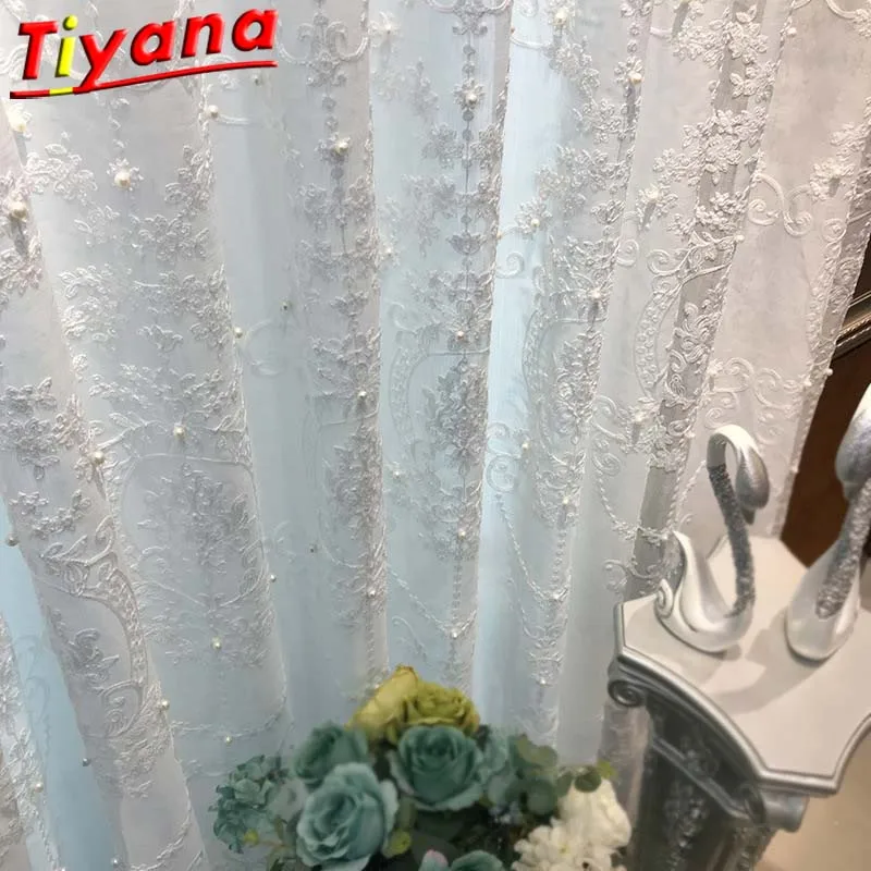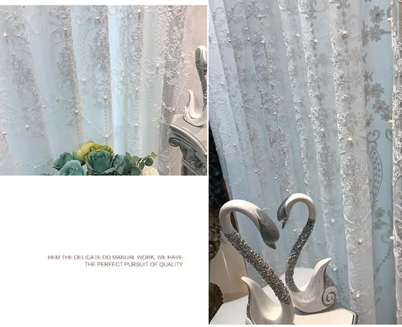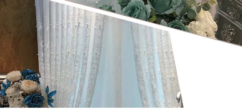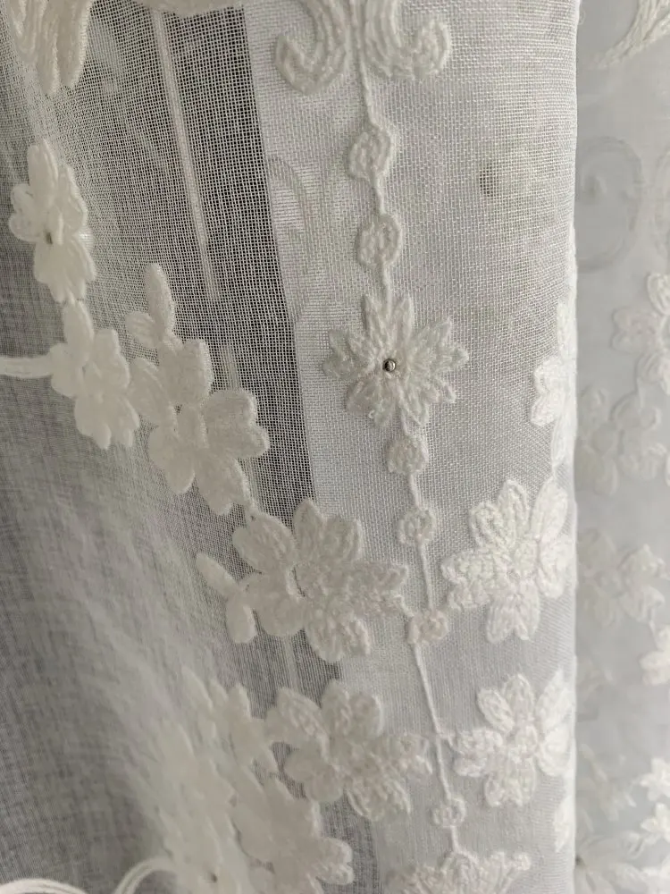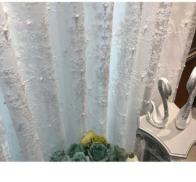 Шторы белые, с жемчугом, элегантные, в скандинавском стиле, с геометрической вышивкой, тюль для гостиной, готовые оконные шторы X-HM005D # WS