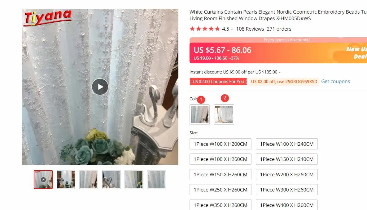 Страна: FR Color: White Pearl Tulle Size: 1Piece W300 X H260CM Processing: Pull Pleated Tape Доставка: Standard Shipping 13.01.2021