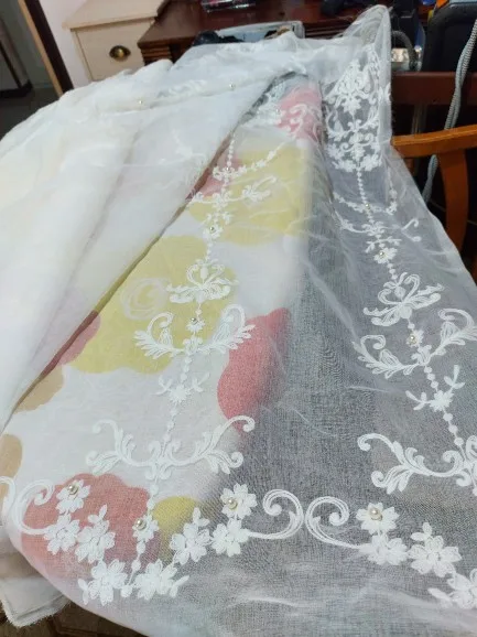 Заказ получила через PDP. На фото продавца рисунок товара совсем не различишь. По факту рисунок тюля такой же как у старого тюля у меня. Покупала старый тюль здесь в Якутске на китайском рынке. Отличается только тем, что нашиты бусинки и всё.