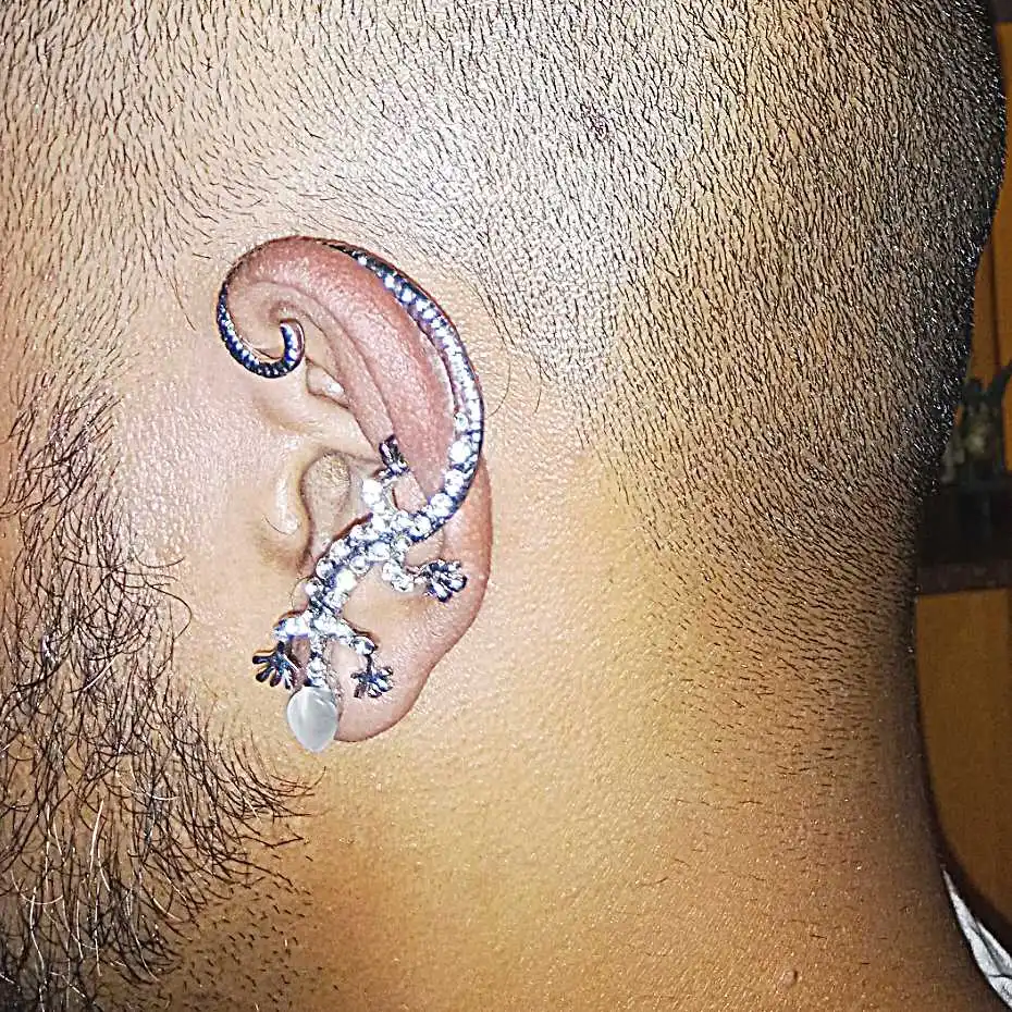 Серьги-клипсы в готическом стиле для женщин, клипсы в стиле панк, вишня ящерицы, цвет золото и серебро, с кристаллами и животными, бижутерия, 1 шт.