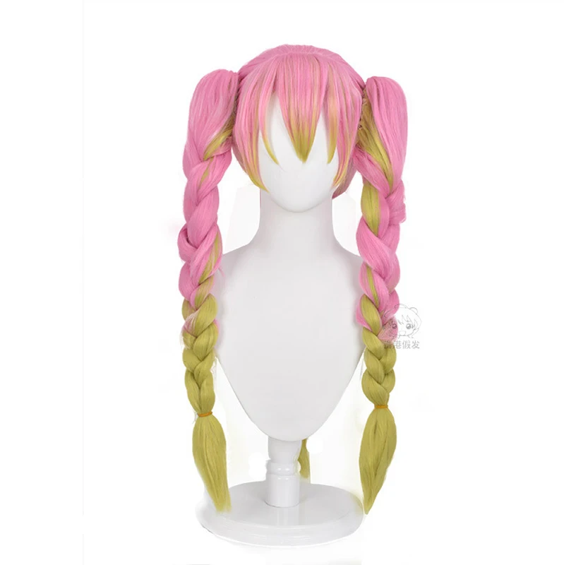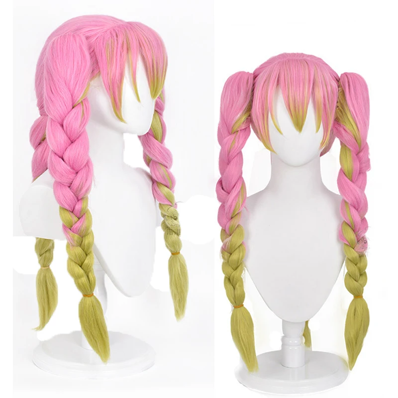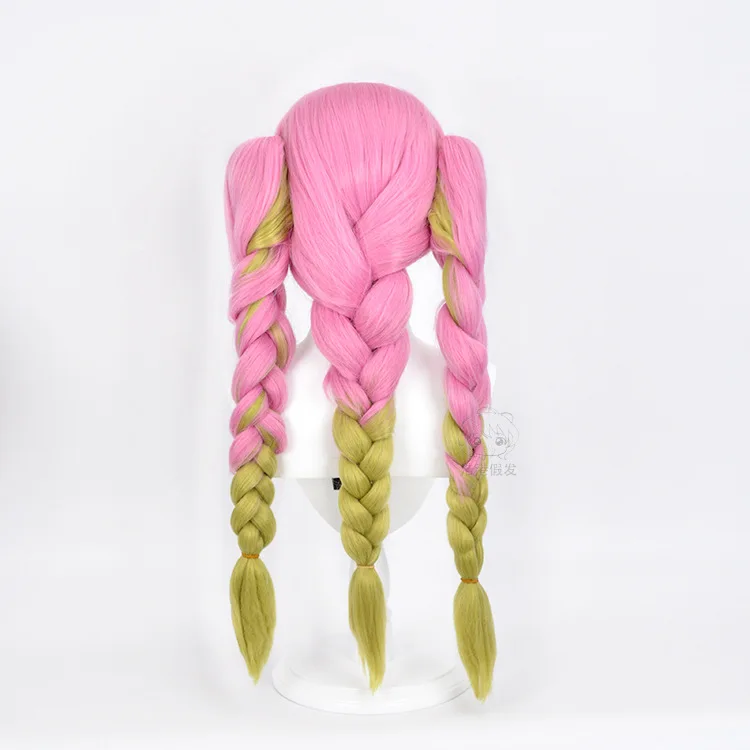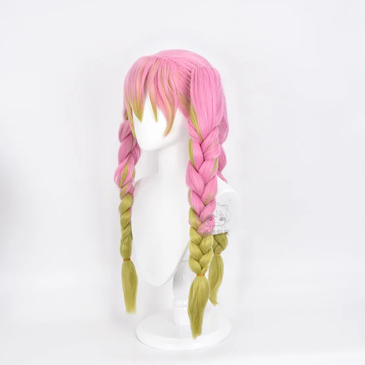 Головной убор Kanroji Mitsuri с тремя хвостиками длинный толстый Плетеный Розовый Зеленый Косплей унисекс для женщин ролевые игры