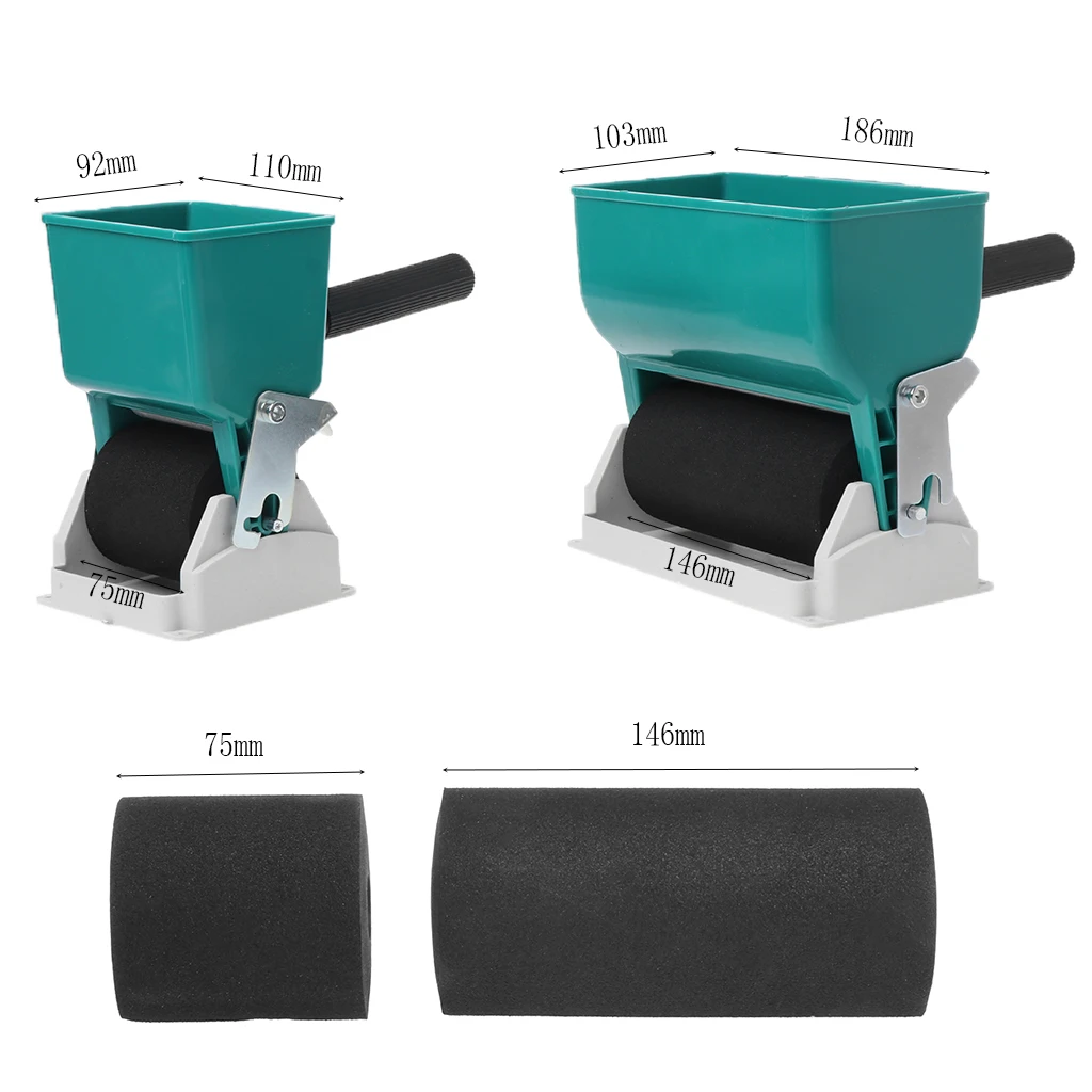 Материал: металл + пластик + губка Цвет: зеленый + кремовый + черный Размер: 3 дюйма, 6 дюймов (необязательно) Для 3 дюймов: ширина ролика: 75 мм/2,95 дюйма Емкость: 180 мл Для 6 дюймов: ширина ролика: 146 мм/5,9 дюйма Емкость: 320 мл Вес: прибл. 600/900 г