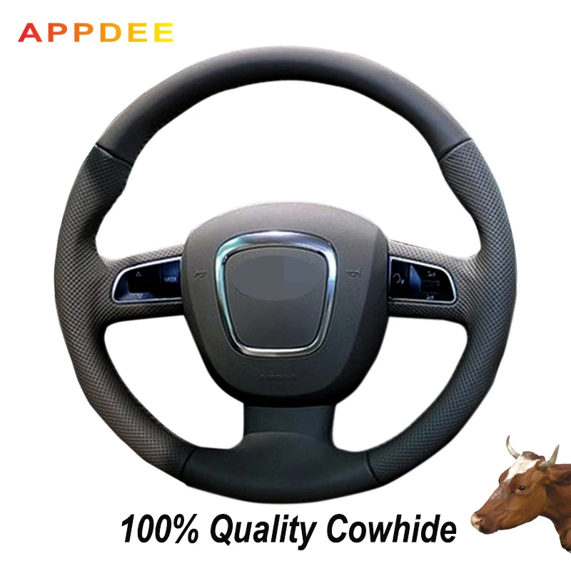 Чехол на рулевое колесо APPDEE, черный чехол на руль из натуральной кожи для Audi A3 (8P) 2008-2013 A4 (B8) 2008-2010 A5 2008-2010 A6 (C6) 2007-2011