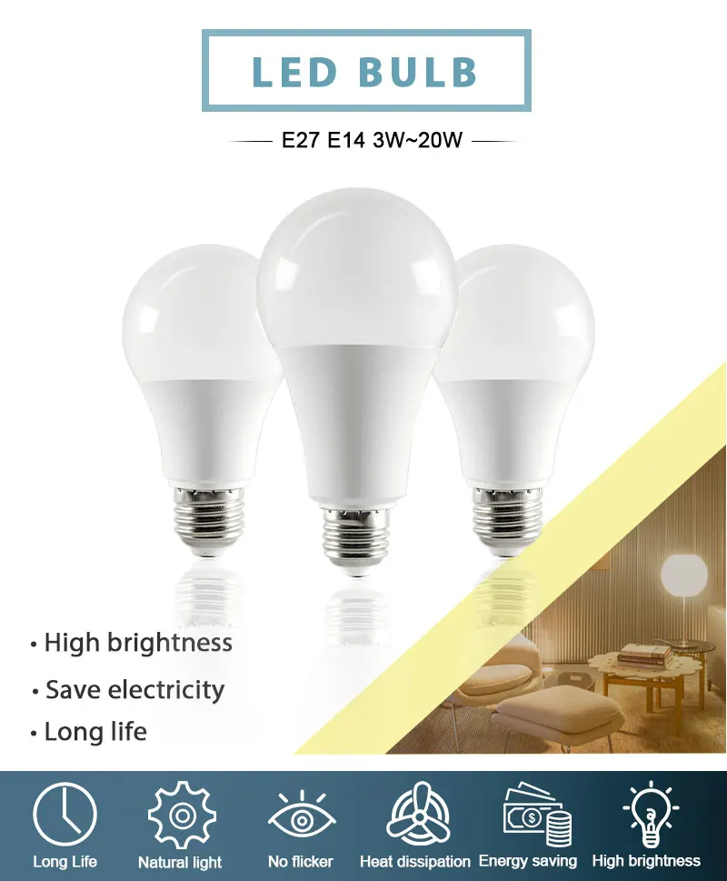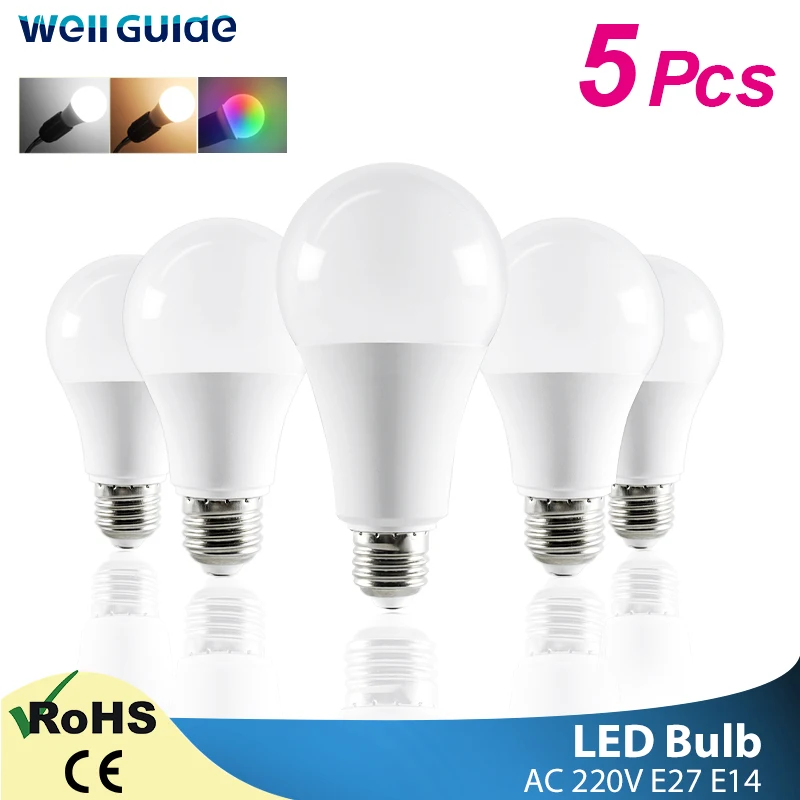 Светодиодные лампочки E14 E27, 3 Вт, 6 Вт, 9 Вт, 12 Вт, 15 Вт, 18 Вт, 20 Вт, 220 В переменного тока