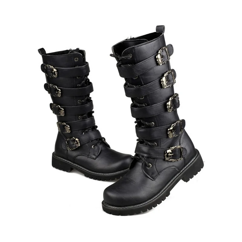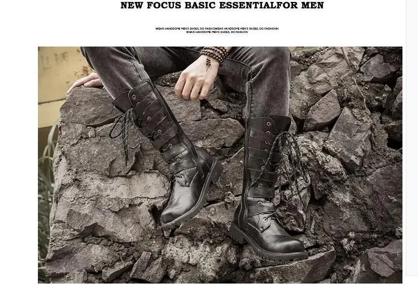 Мужские мотоциклетные ботинки до середины икры, черные кожаные ботинки с высоким берцем в стиле панк-рок, повседневная обувь для верховой езды, зима 2019
