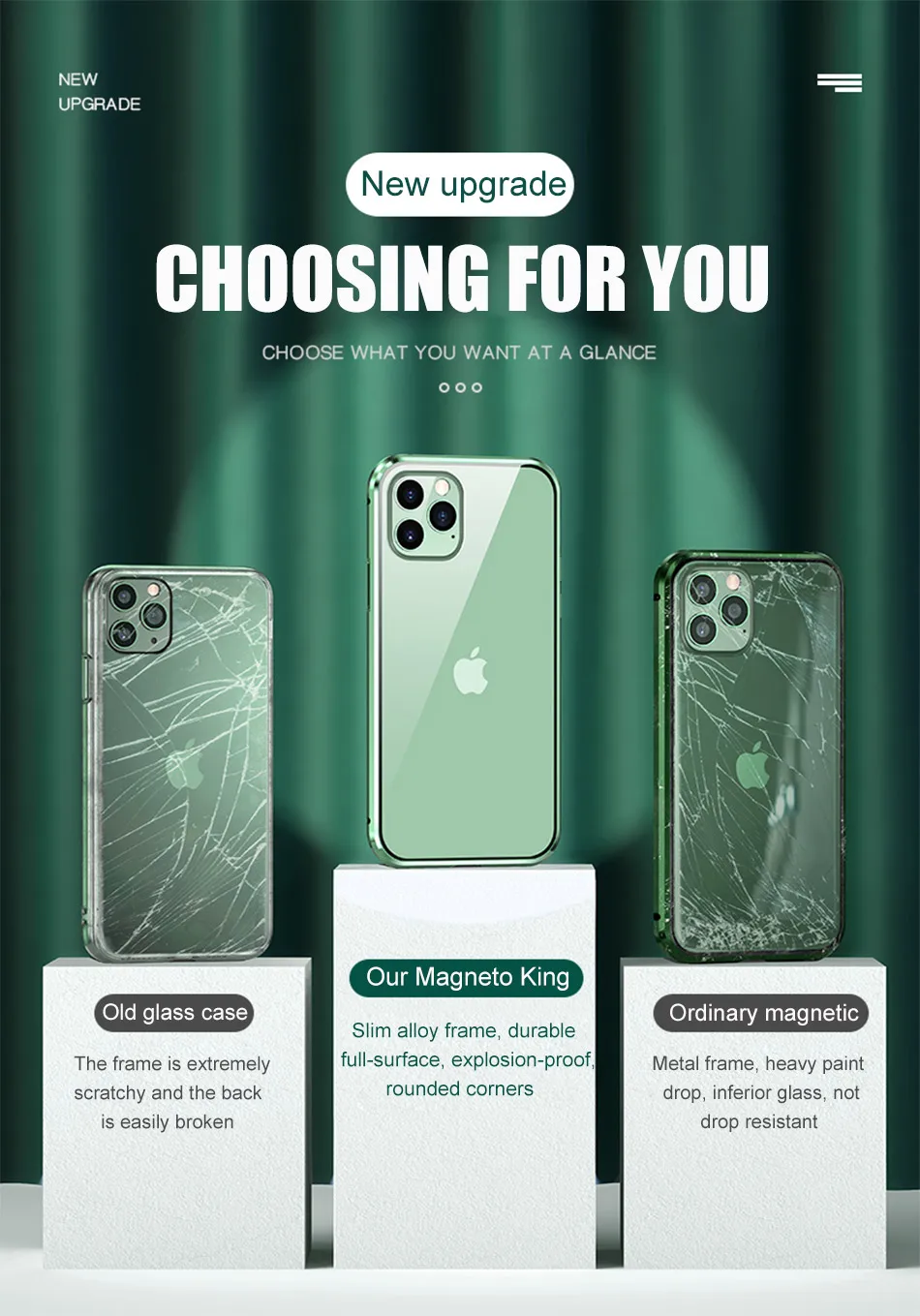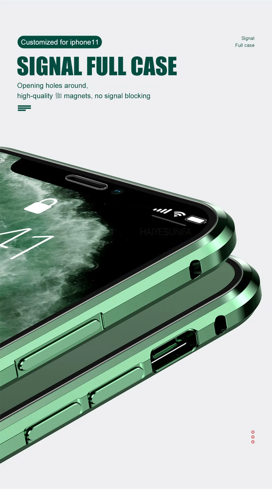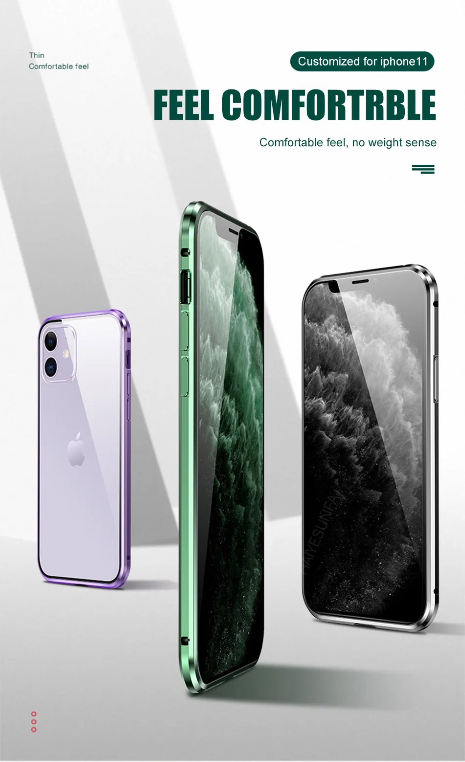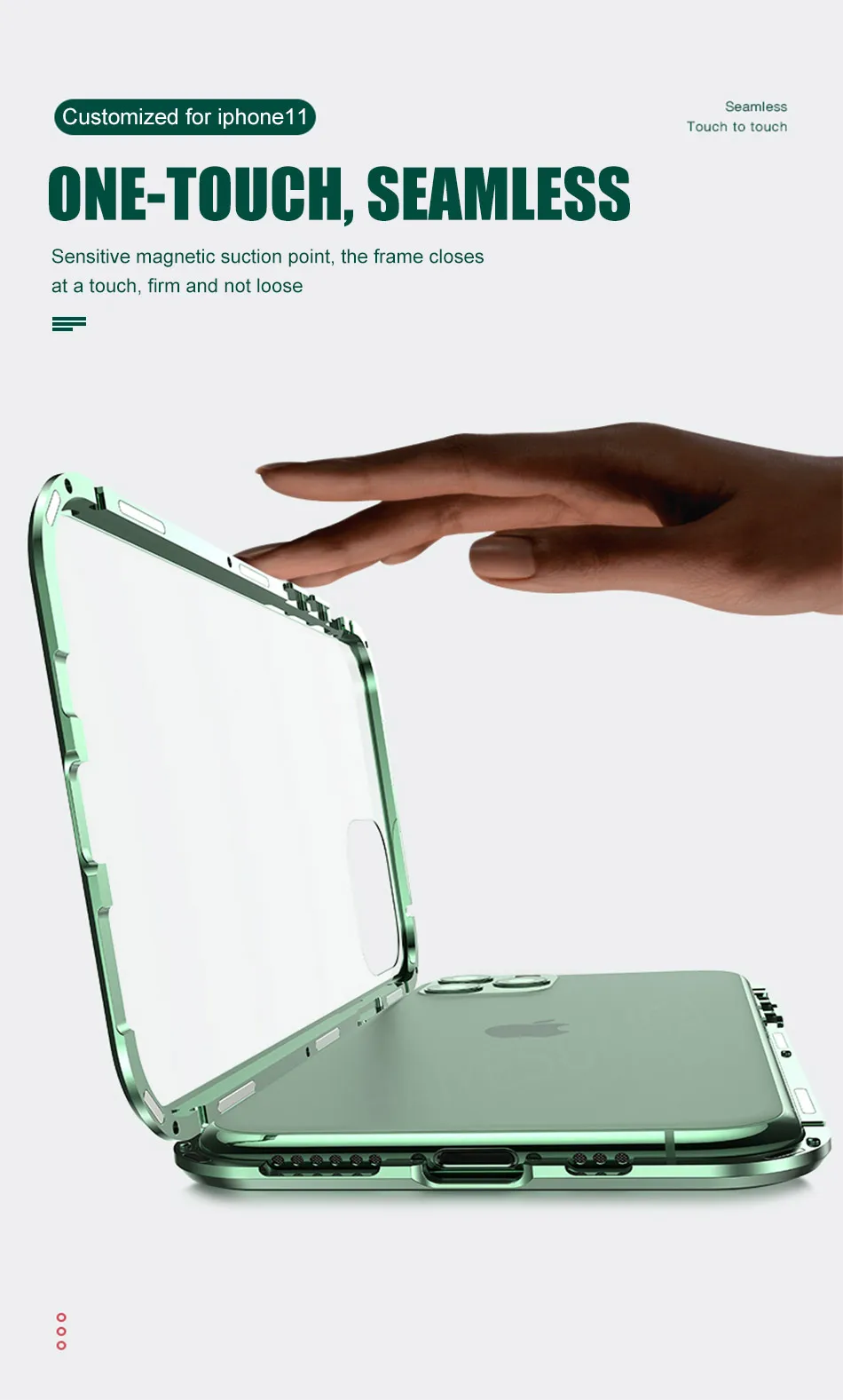 Двухстороннее стекло (передняя + задняя) металлический Магнитный чехол для iphone Описание: 【Магнитная адсорбционная конструкция и двухстороннее прозрачное закаленное стекло 】 2019 Новый Магнитный адсорбционный чехол для телефона принимает многоточечную и сильную технологию адсорбции магнитного поля со встроенным магнитом окружает стеклянный корпус. 【 360 ° полная защита корпуса и алмазная кромка 】 чехол для телефона на 360 ° полная защита металлического каркаса и твердое закаленное стекло дизайн приподнятый обрамление подъемный экран и камера с плоских поверхностей, жесткая наностеклянная задняя панель, защита от царапин и грязи, защита телефона от царапин, ударов и пятен, материалы премиум-класса обеспечивают непревзойденную защиту и повышенную долговечность. Алмазная кромка делает чехол крутым и великолепным, что делает ваш телефон выглядеть по-разному. 【 Неблокирующий сигнал и поддержка беспроводной зарядки 】 Точные вырезы для динамика, камеры, вспышки и других функциональных портов, которые позволяют легко получить доступ ко всем портам и функциям, не снимая чехол. Может поддерживать беспроводную зарядку и не блокировать сигнал сотового телефона, не снимая чехол, он не легко поглощает тепло при зарядке из-за задней закаленной стекла.