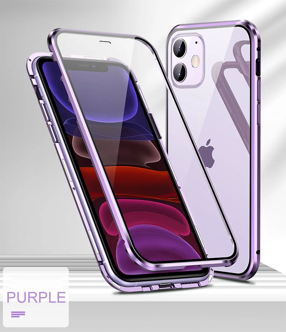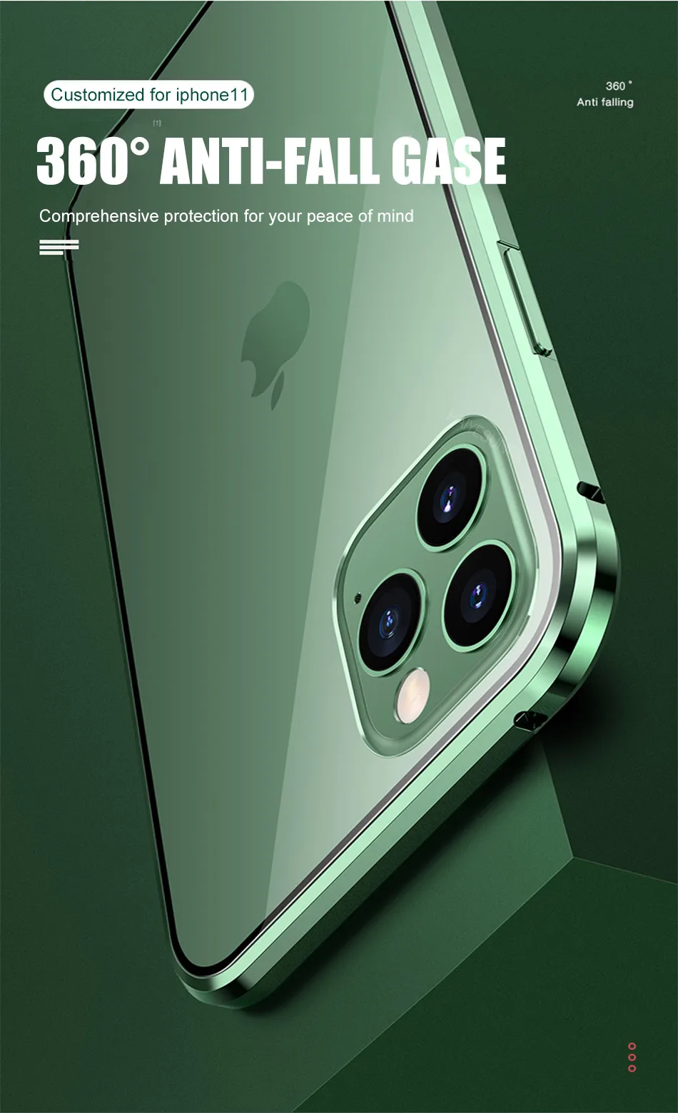 Роскошный 360 металлический магнитный чехол для телефона IPhone 12 11 Pro X XR XS Max двойной стеклянный чехол для IPhone 7 6 8 Plus флип-чехол