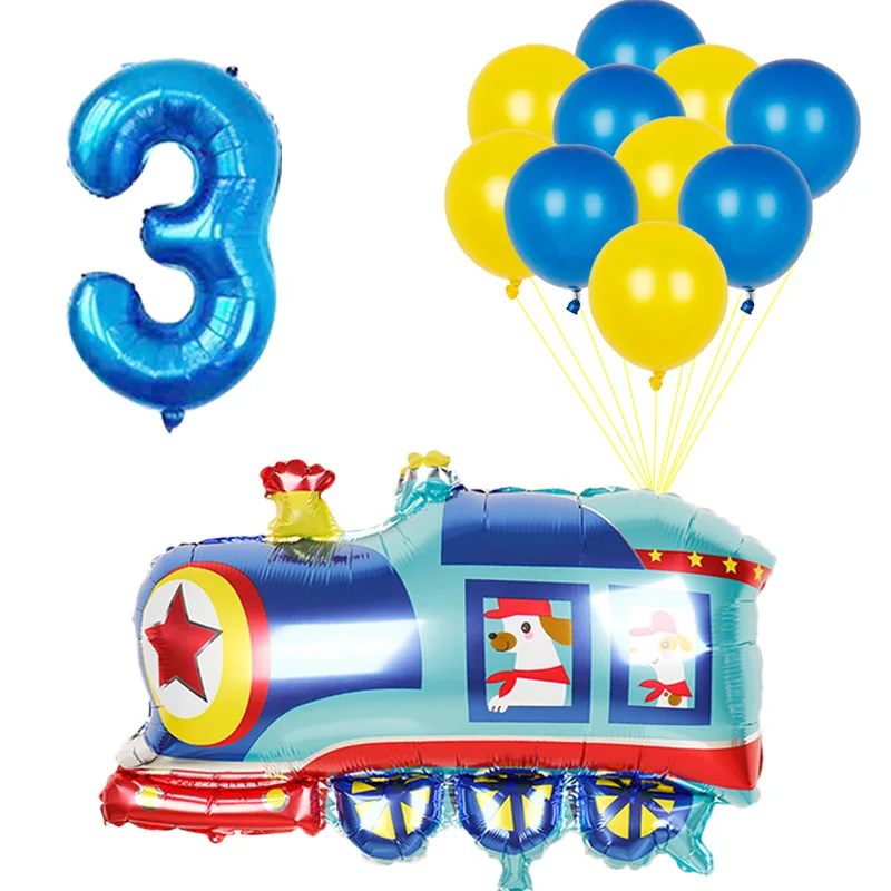 1 набор, Мультяшные воздушные шары с номером автомобиля, пожарная машина, поезд, фольгированный шар, латексные гелиевые шары, украшения для дня рождения, детский подарок