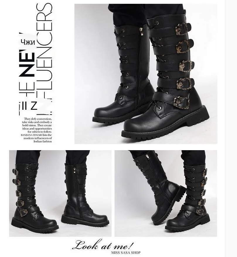 Мужские кожаные мотоциклетные ботинки, военные боевые ботинки, готи...