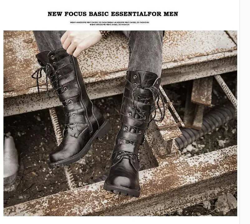 Мужские кожаные мотоциклетные сапоги до колена; Военные ботинки; Бо...