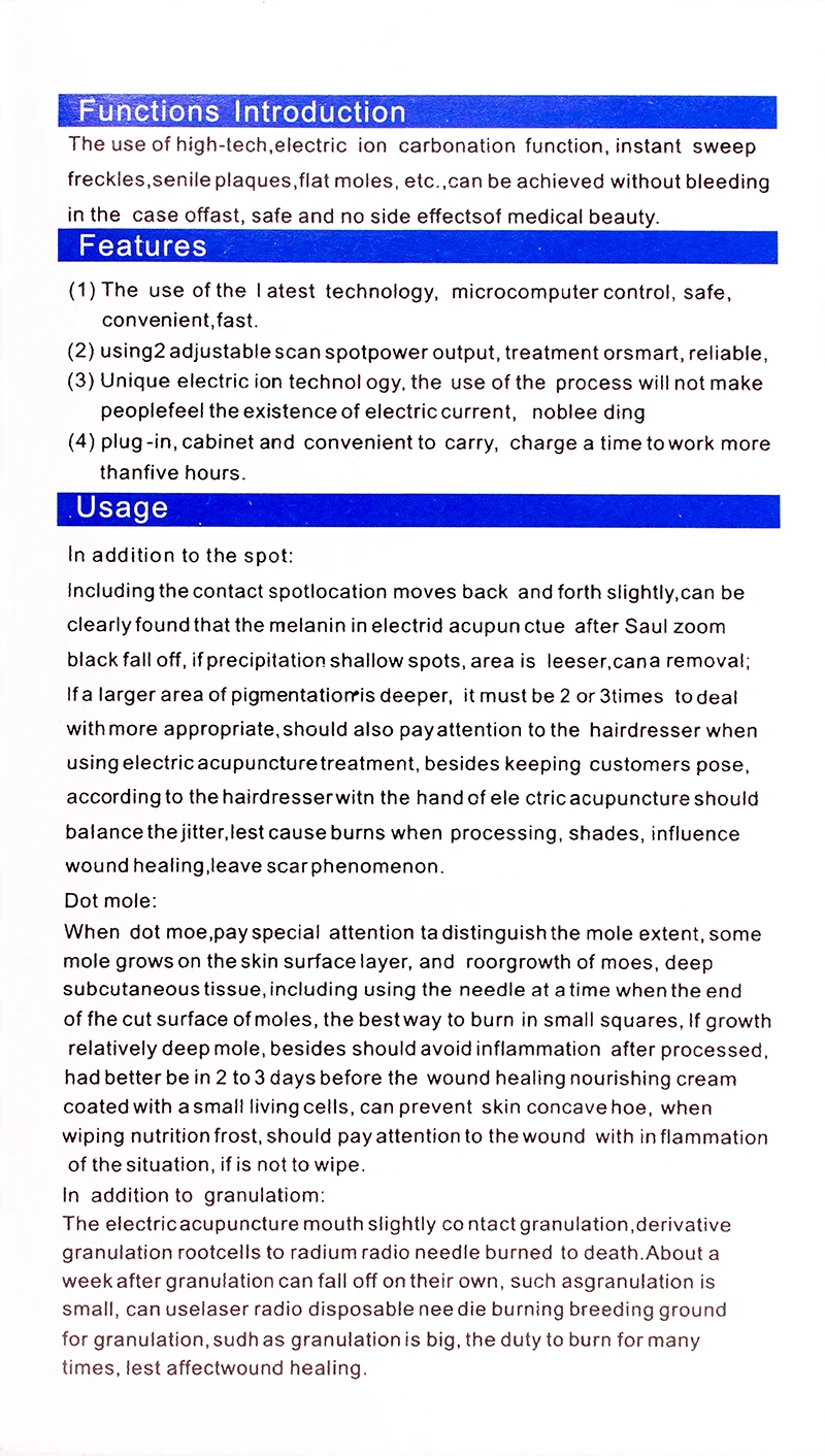 Обновление ручка для удаления родинок 1. Безопасный и эффективный-эта ручка для удаления крота одобрена FDA. Эта ручка с технологией ионизации углерода и микрокомпьютерным управлением оснащена 9 регулируемыми уровнями мощности, умной и надежной обработкой. 2. Простота в использовании дома-эта ручка для красоты-это простой продукт для эксплуатации. Если вы новичок, просто следуйте инструкциям пользователя. Сначала вставьте иглу, включите средство для удаления веснушек и выберите уровень прочности в соответствии с вашими потребностями. Кнопка «OUT» для работы на родине и аккуратно подметает точку от спины до передней с небольшой площадью. 3. Самый последний обновленный набор для красоты кожи-наша ручка для удаления кожи обновляется до 9 уровней. Вы можете контролировать уровень прочности на ЖК-дисплее. 9 различных регулируемых выходов мощности точки сканирования для различных процедур: более низкие уровни используются на месте и веснушки и более сильные уровни используются на родинок и кожи тегов. 4. В первый раз, вы можете практиковать ручку на поверхности яблока с уровнем. Используйте тонкие иглы и низкую скорость, просто нажмите верхний слой, вы можете вернуться к нему несколько раз. Не оставайтесь в одном месте, чтобы избежать сжигания слоя дермы. Это может выглядеть ужасно, делая это сразу, однако, царапины начали выходить естественным образом. Пожалуйста, подождите с терпением, пока шрам исчезнет. 5. Экономьте деньги и время-100% возврат денег, если вы не удовлетворены этим товаром, пожалуйста, используйте товар в соответствии с инструкциями. И отличное обслуживание клиентов, любой вопрос, пожалуйста, не стесняйтесь связаться с нами через Aliexpress сообщение.