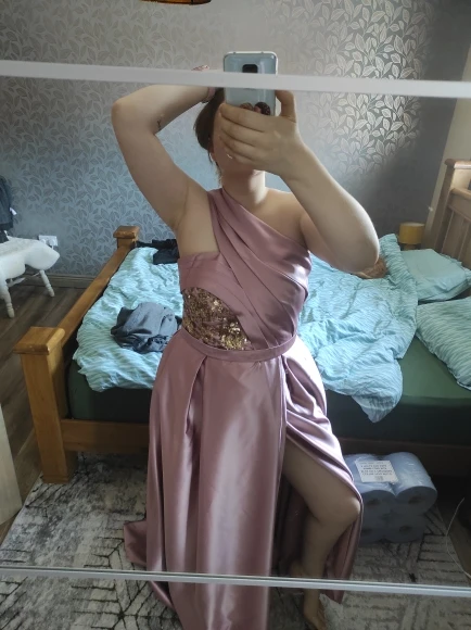 Фиолетовое вечернее платье Smileven на одно плечо с разрезом сбоку