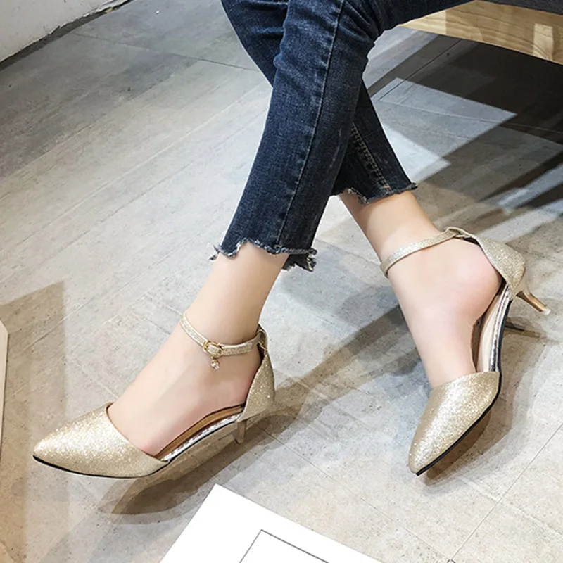 Летние женские босоножки; Туфли-лодочки с ремешком на щиколотке; Шикарные свадебные туфли; Модельные туфли серебристого и золотого цвета; Женские туфли-лодочки на среднем каблуке; 7823L