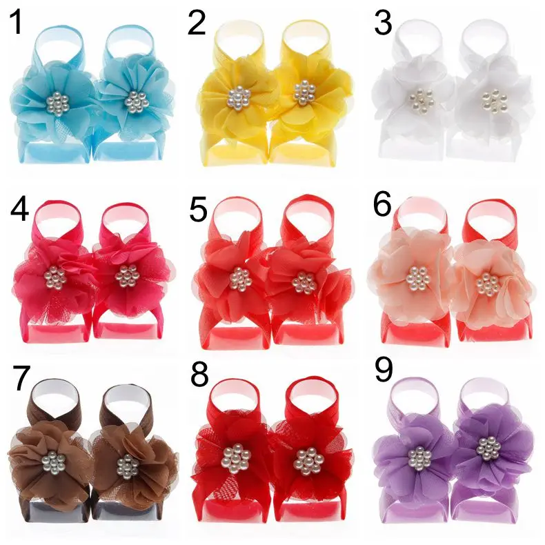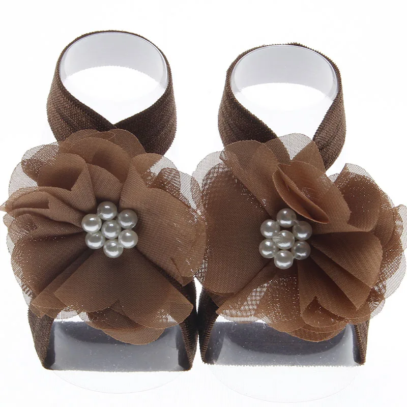 Винтажные босоножки Yundfly для новорожденных, шифоновые, с жемчужинами, с цветами на резинке, реквизит для фотосессии для девочек