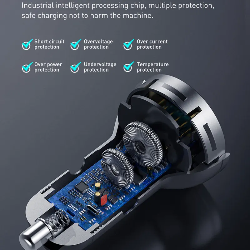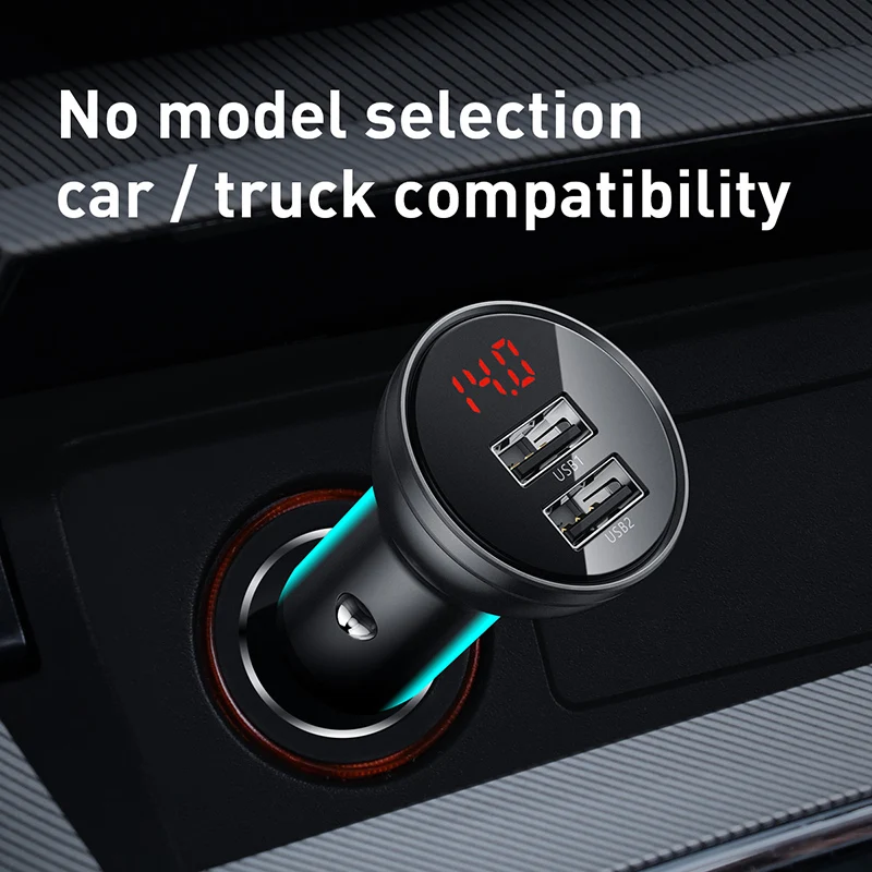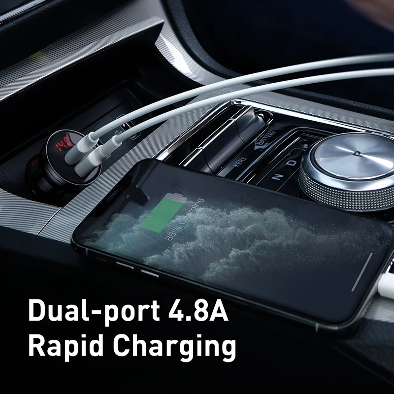 Автомобильное зарядное устройство Baseus, 24 Вт, с двумя USB-портами, с полностью металлическим цифровым дисплеем, 4,8 а, с прикуривателем для iPhone