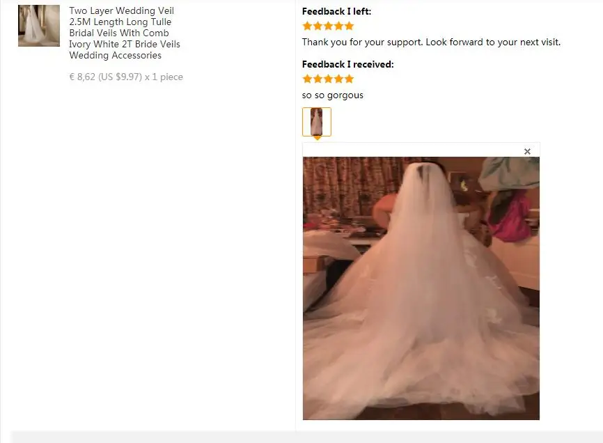 Тип товараСвадебная вуаль
