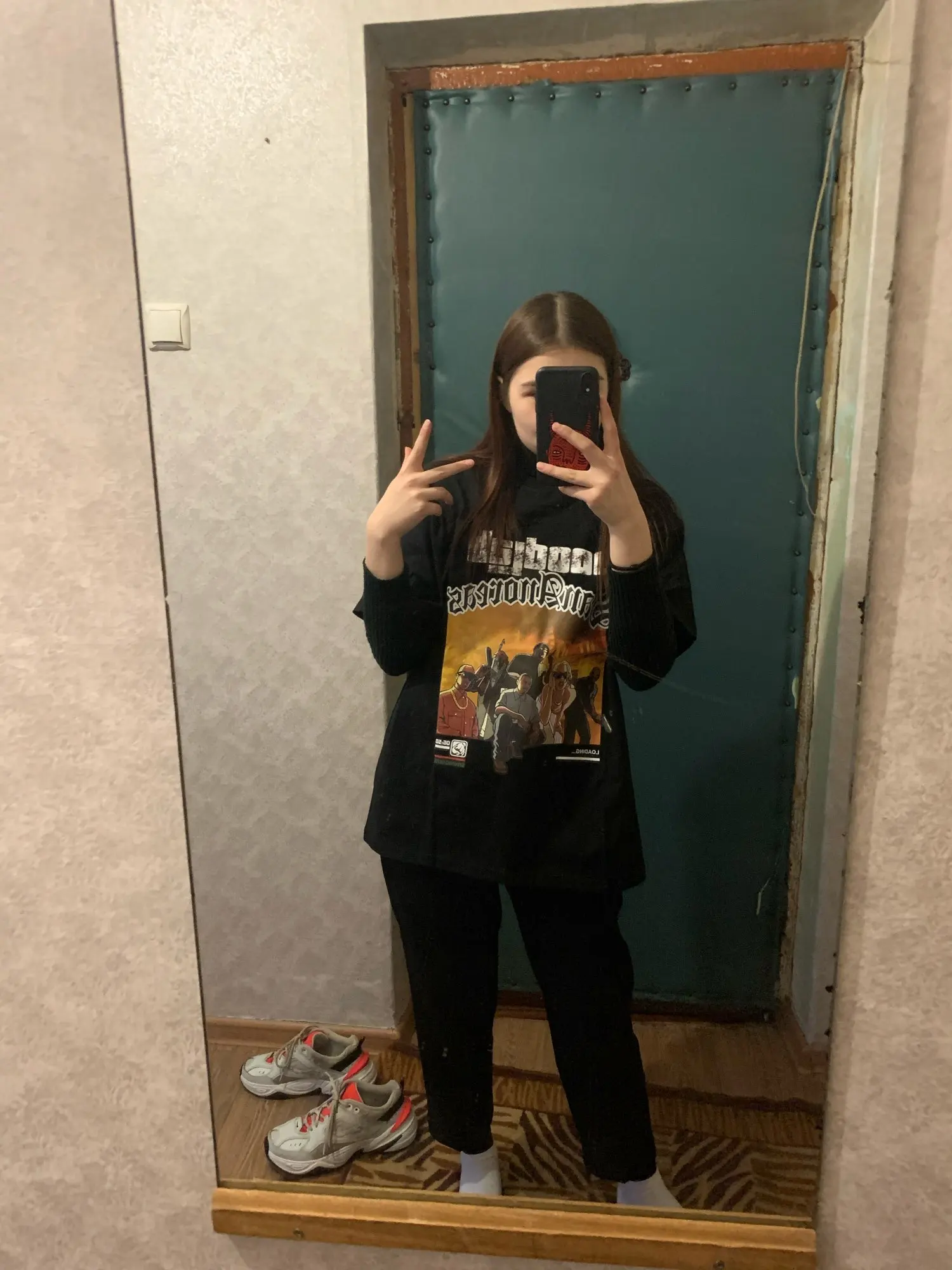 вообще, надо было заказывать размер больше, но уже ладно. Футболка классная, правда на ней белое пятно, хз чё это, надеюсь не cum. ткань просто❤. В общем и целом футболка отпад, супер, класс, шик. Ставлю 4 балла только из-за пятна