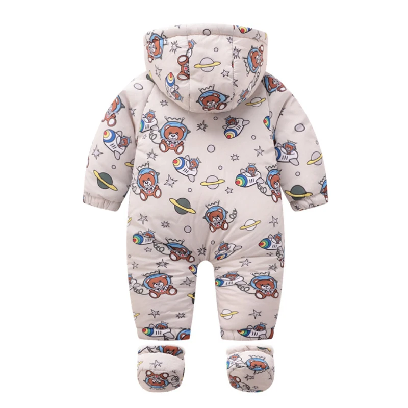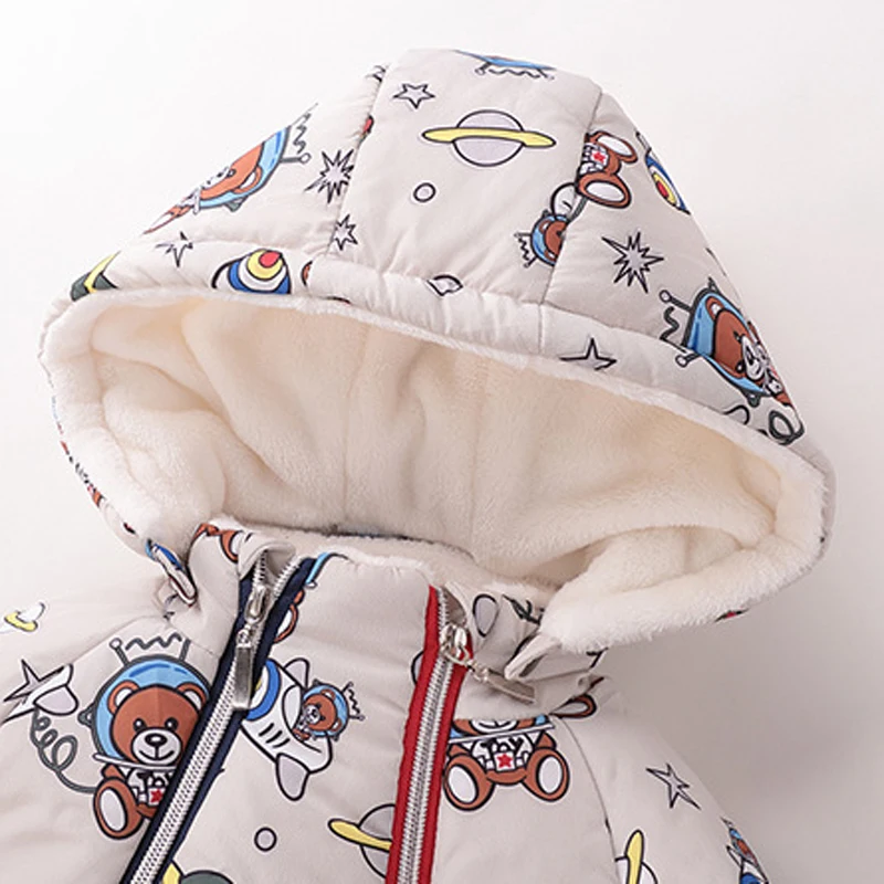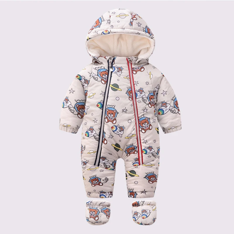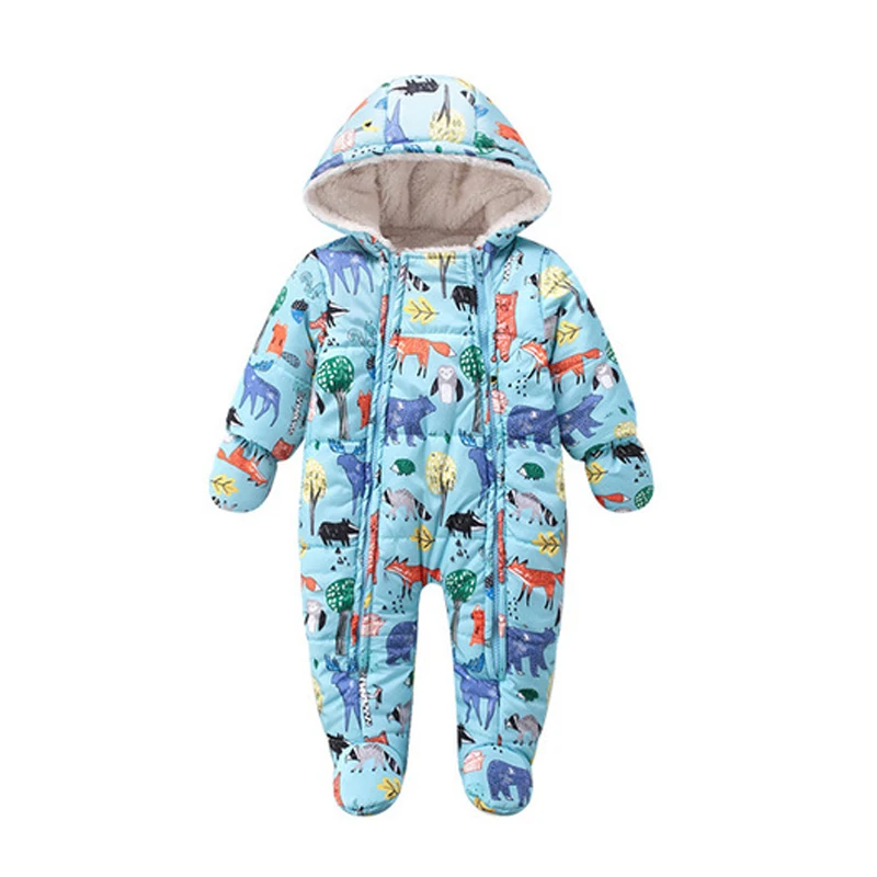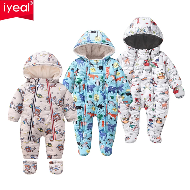 Детский комбинезон IYEAL для новорожденных, зимний плотный теплый Детский комбинезон для маленьких девочек и мальчиков, одежда для младенцев с принтом и капюшоном