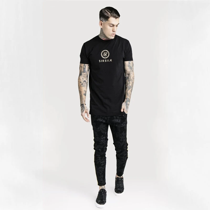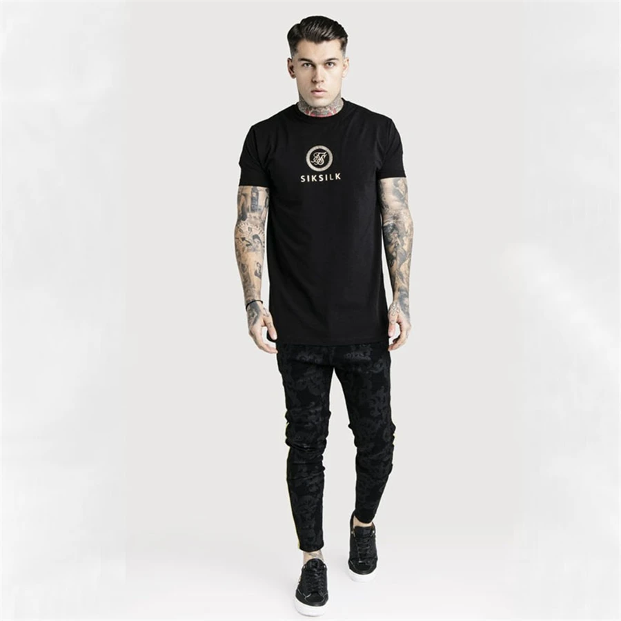 Мужская шелковая футболка Sik с коротким рукавом, уличная одежда в стиле хип-хоп, Шелковый свитшот, осень
