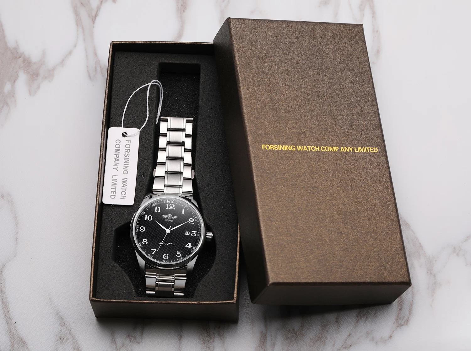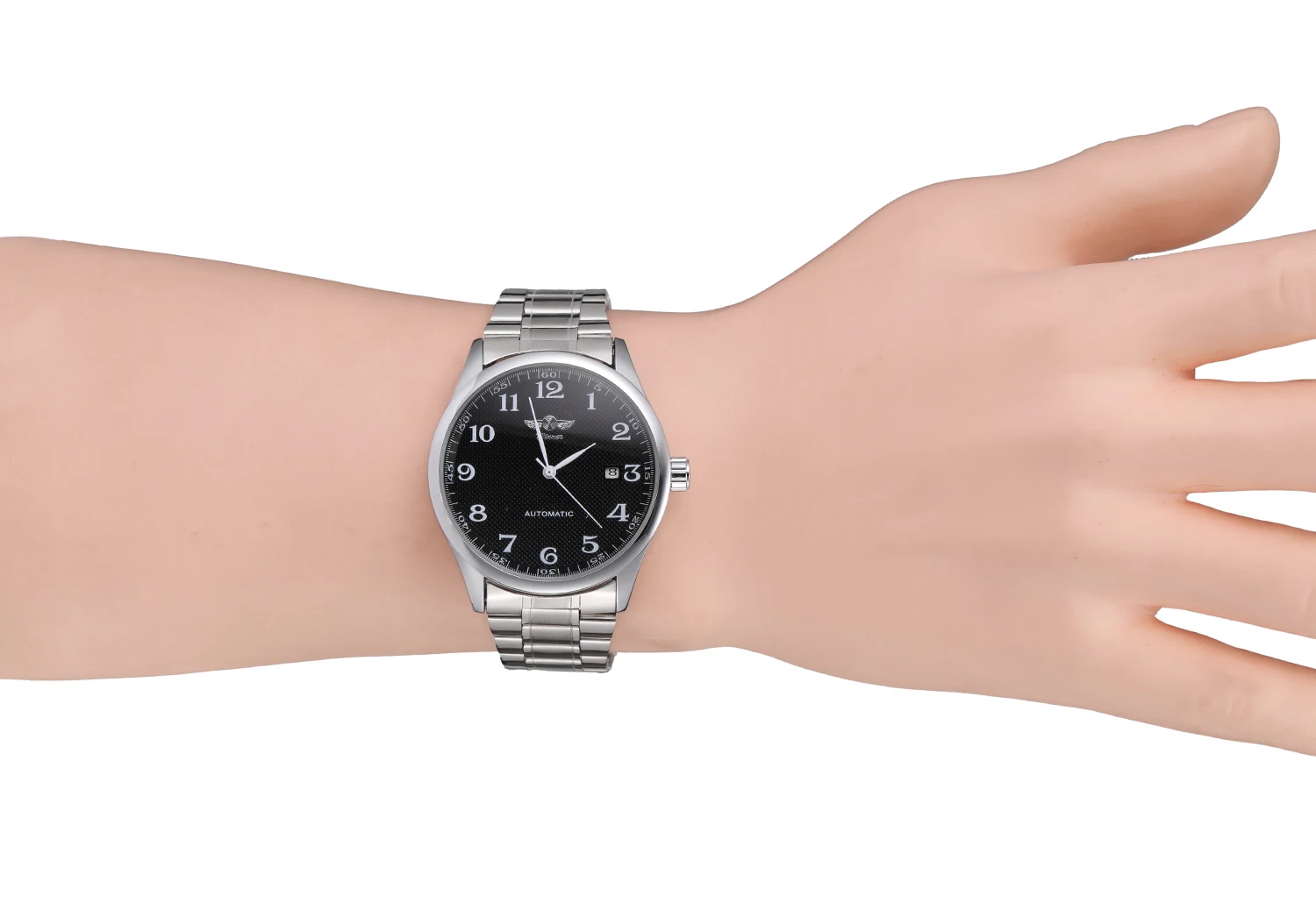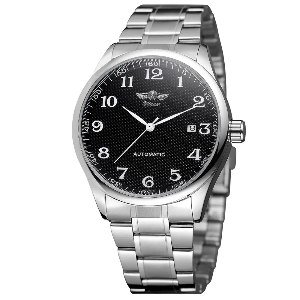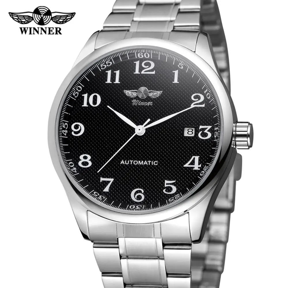 Часы наручные WINNER мужские и женские Автоматические, модные простые механические, с черным циферблатом и ремешком из нержавеющей стали
