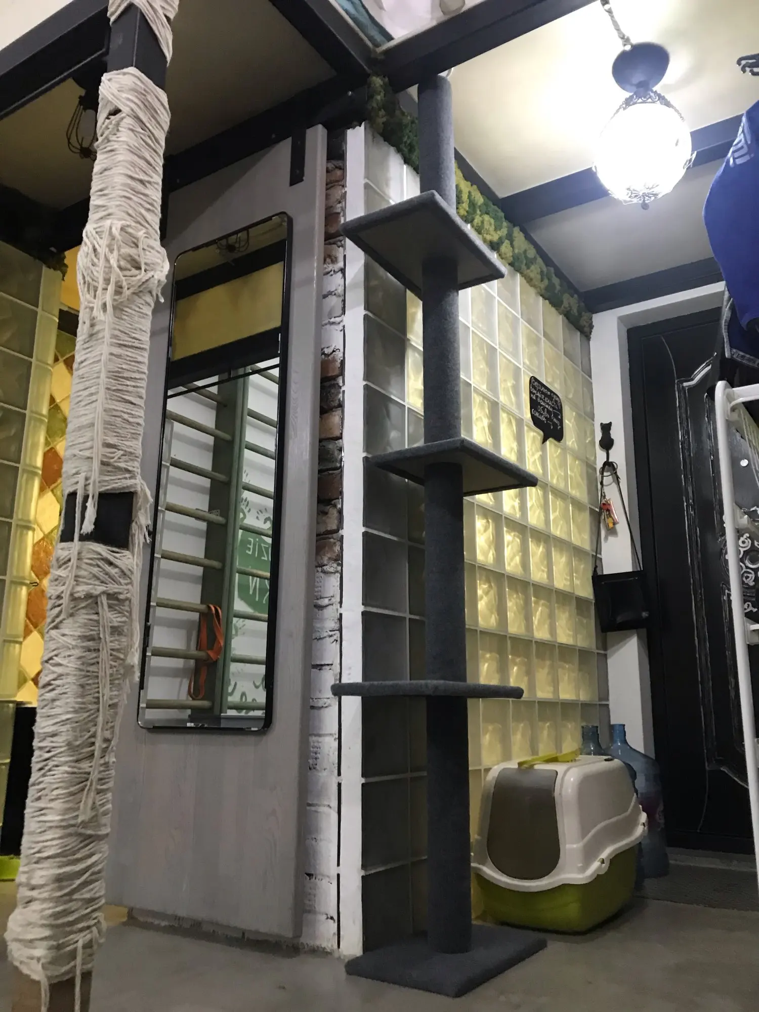 3. Очень высокий, многослойный --- подходит для 2 и более кошек, играющих вместе