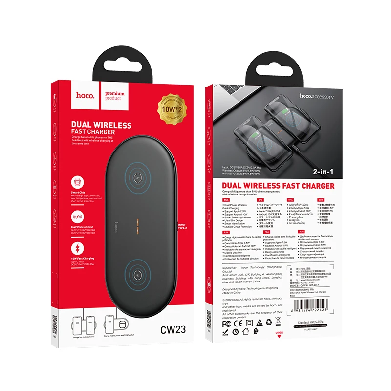 Беспроводное зарядное устройство HOCO CW23, белоечёрное