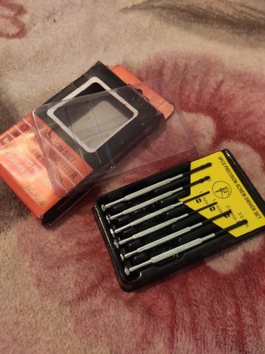 Посылка пришла за месяц, трек номер отслеживался, коробка для отвёрток очень хлипкая, крышка не держится, если в сумке положить боком, то все перевернётся наверное сверху лучше закрепить резинкой, чтобы все не рассыпалось, отвёртки достаточно лёгкие, в гвоздики в очках хорошо проходят и выполняют свою задачу, покупкой довольно, но если бы коробка была с надёжной крышкой было бы лучше