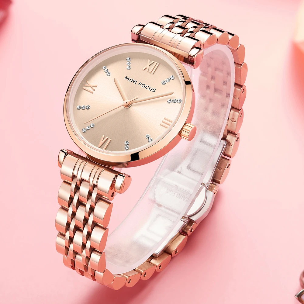 Часы наручные женские с мини-фокусом, брендовые Роскошные модные водонепроницаемые из нержавеющей стали, цвета розовое золото, 30 м